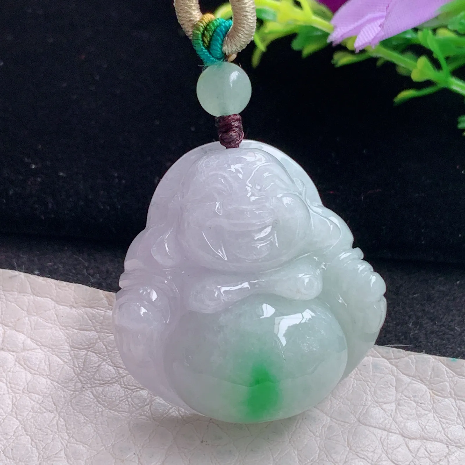 zen自然光33*32*12.3天然缅甸翡翠飘绿秀气佛公 弥勒佛玉吊坠 玉挂件
