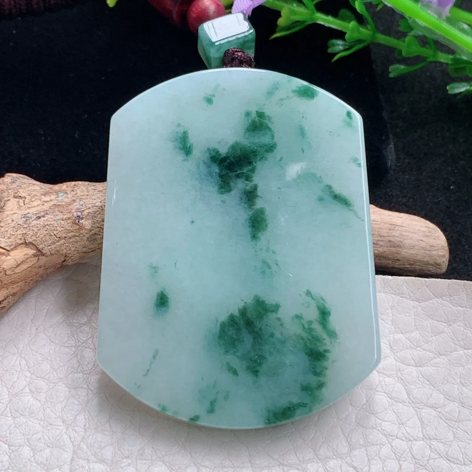 zen自然光52.5*40*5.8天然缅甸翡翠飘获平安无事牌玉吊坠 玉挂件