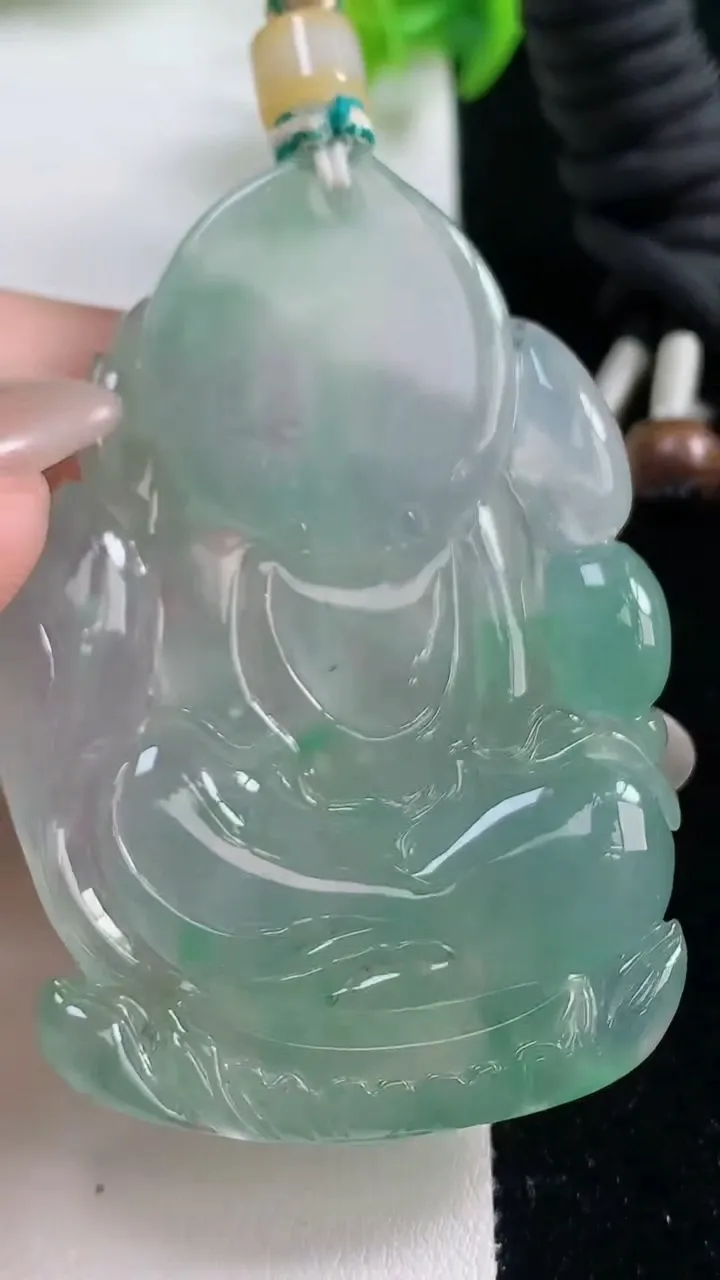 天然A货翡翠大势至菩萨吊坠,尺寸58-41.3-8.3,重量:41.54g 10月23日