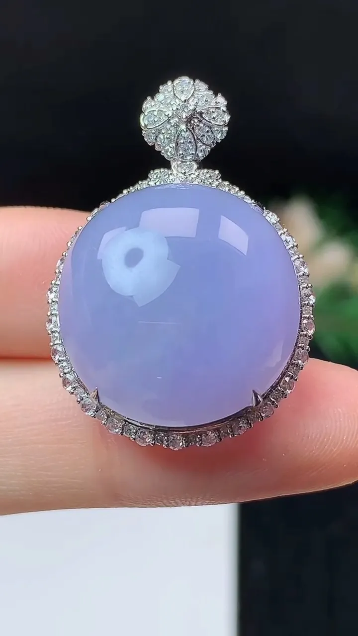 天然A货翡翠k金紫罗兰蛋面吊坠,尺寸33.3-22.9-13.3,裸石20.7-19.8,重量:9.…