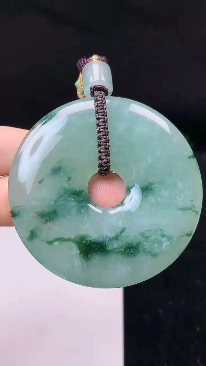 天然A货翡翠飘花平安扣吊坠,尺寸58-8.3,重量:66.76g 10月24日…
