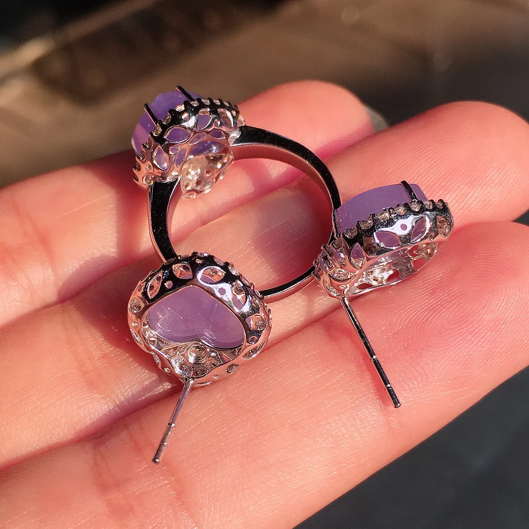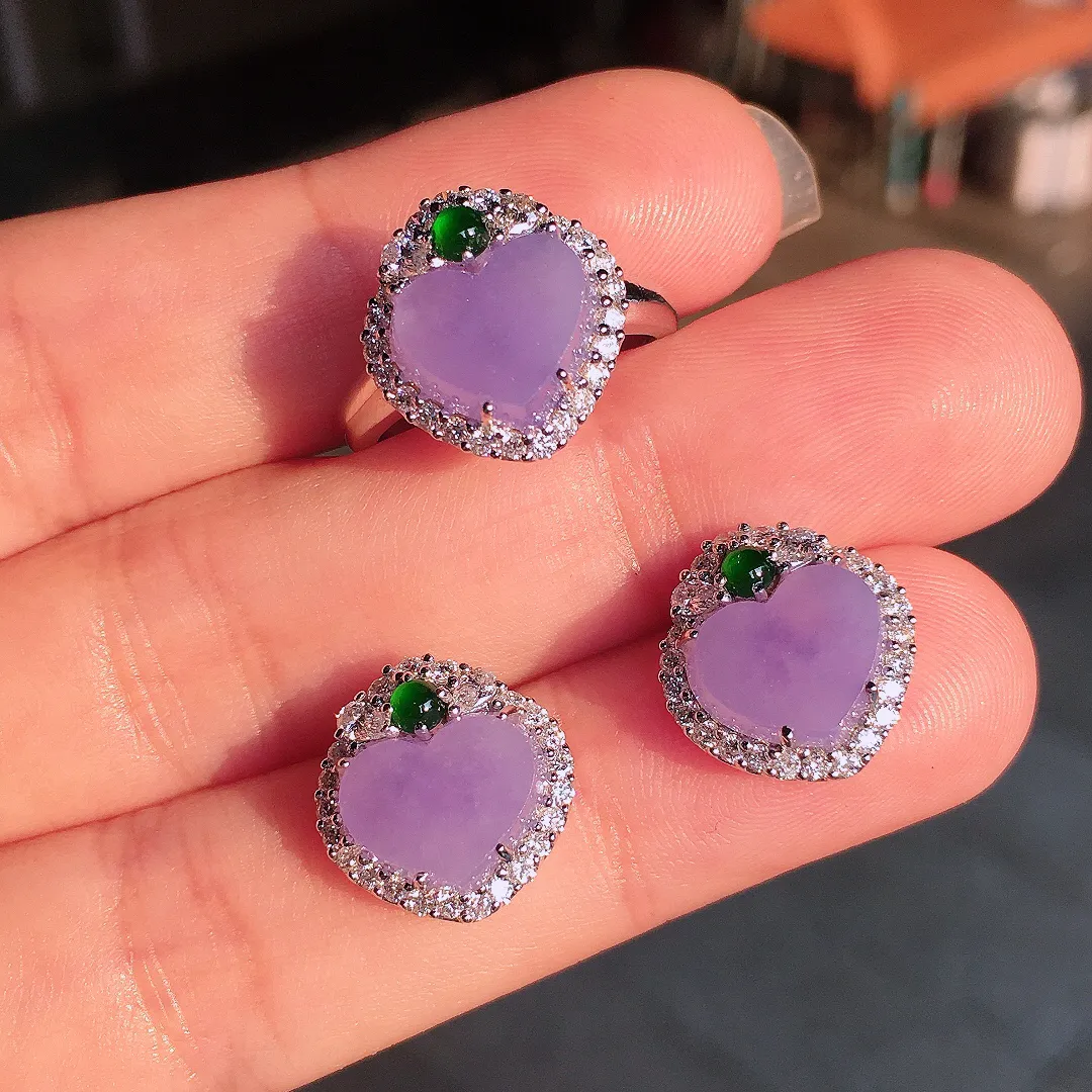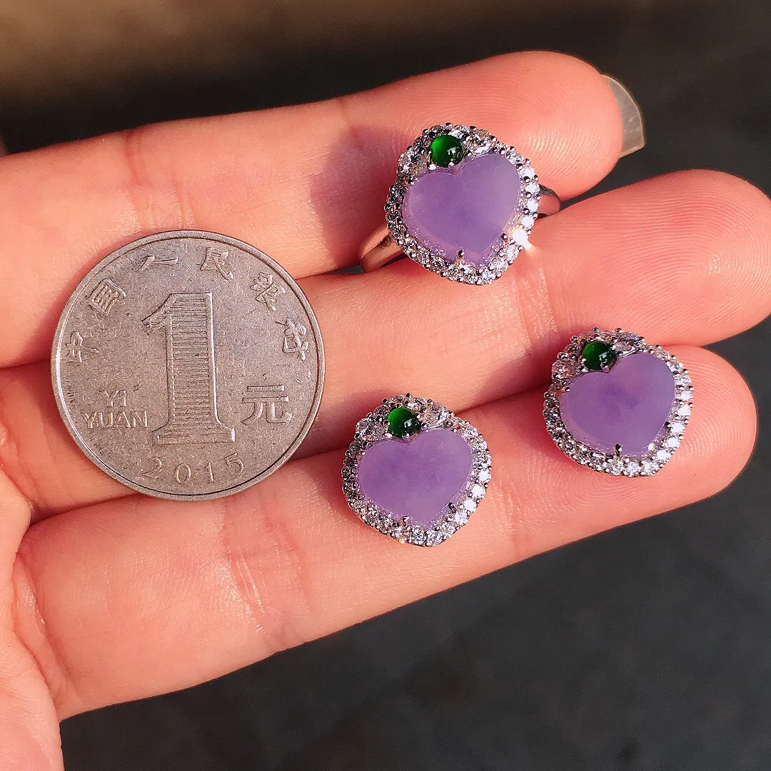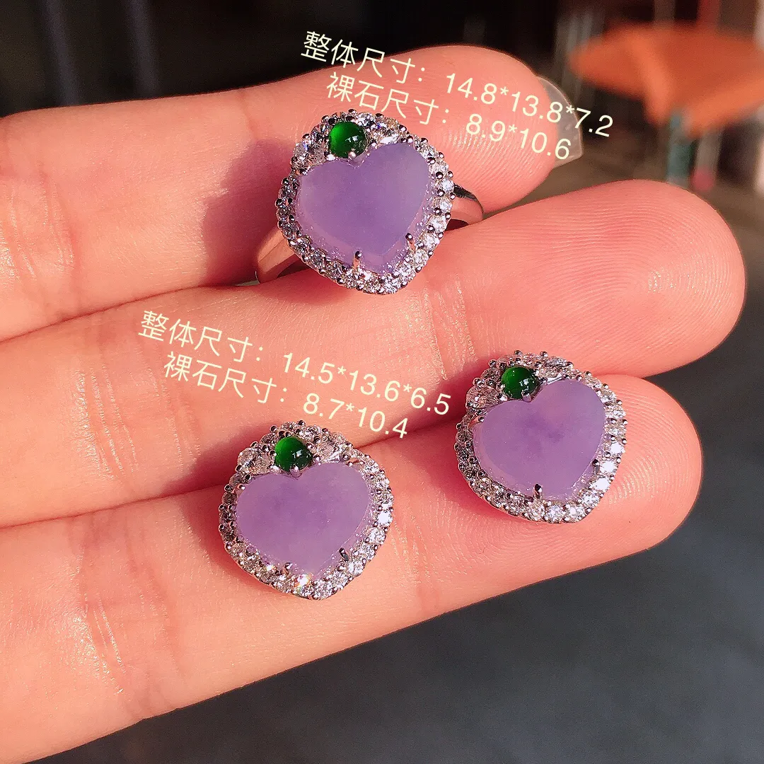 紫罗兰️套装(耳钉+戒指),色泽均匀艳丽,玉质细腻,荧光感超 强,饱满圆润,尽显优雅气质,18k 金豪华镶嵌