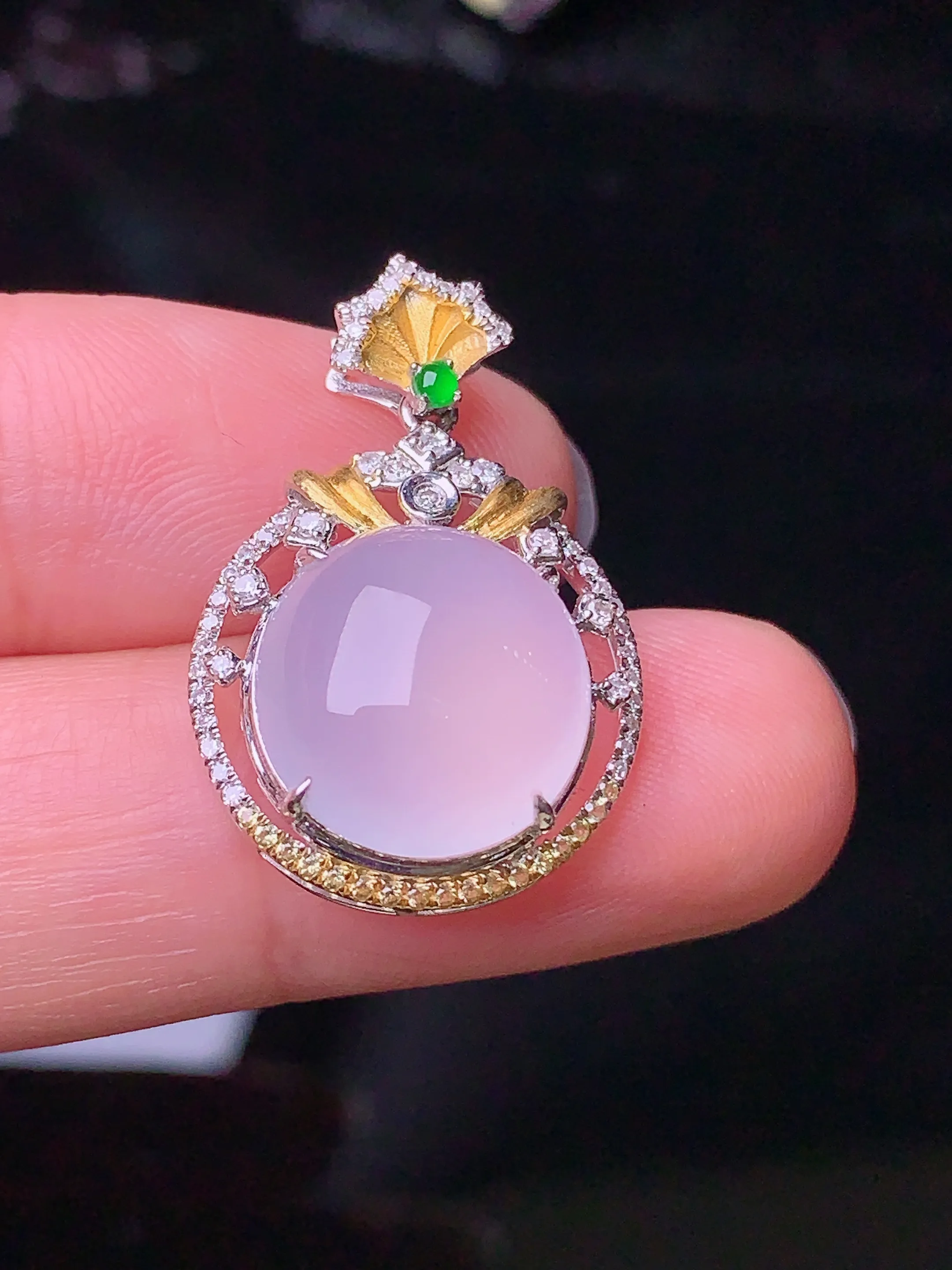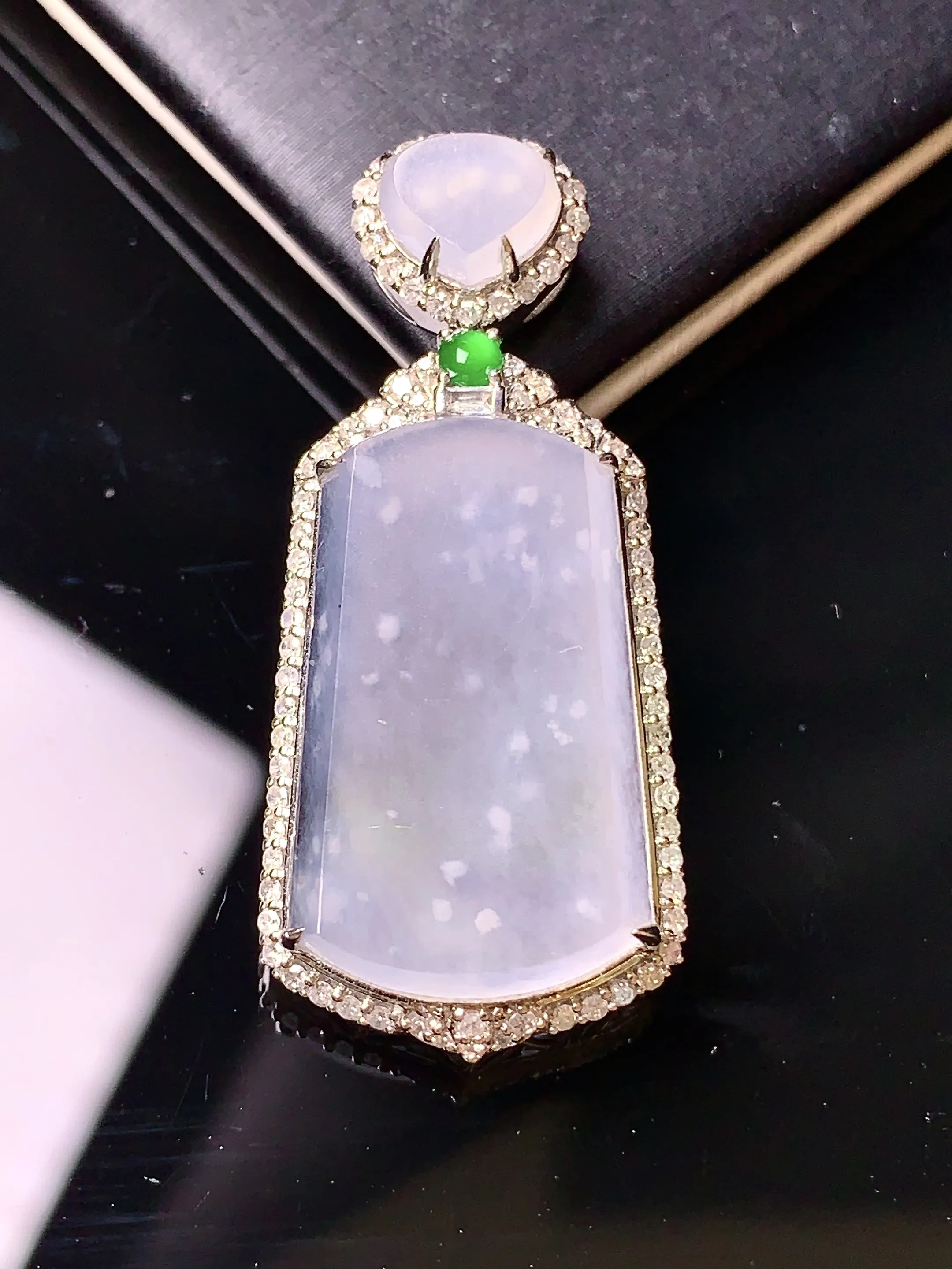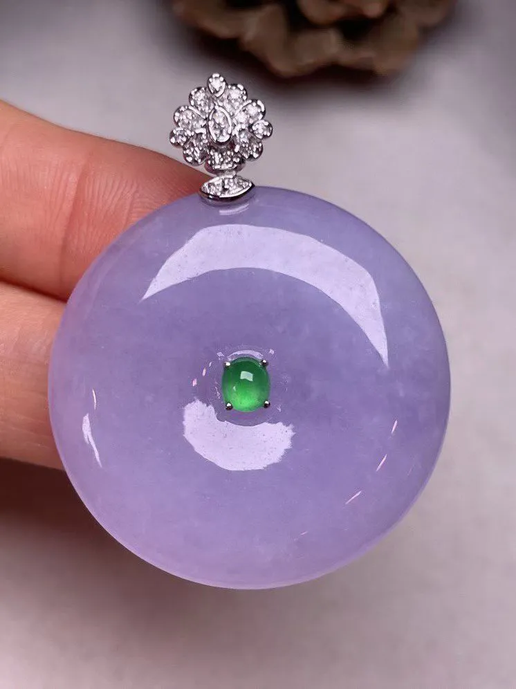 冰糯种紫罗兰平安扣吊坠、真金真钻镶嵌,种水好,玉质细腻 .裸石尺寸 31.6