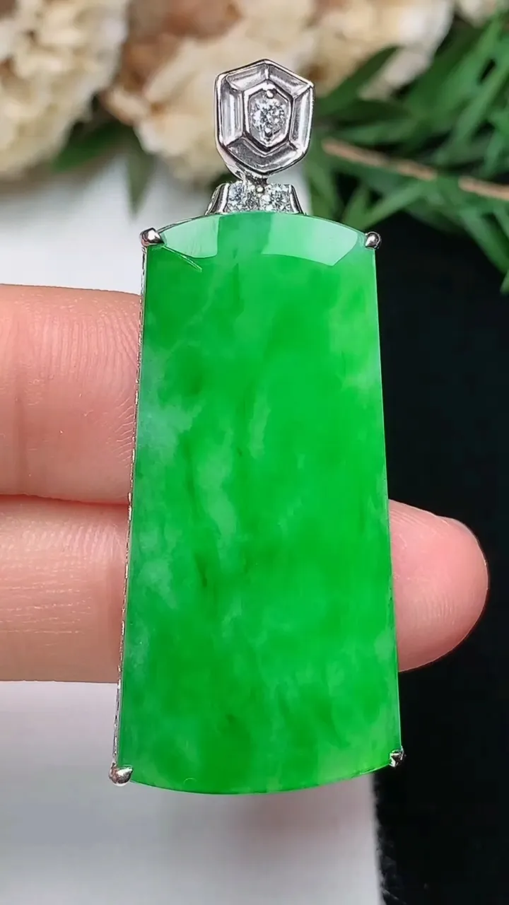 天然A货翡翠无事牌吊坠,尺寸34.5-17.5-6.5,重量:9.52g 12月13日