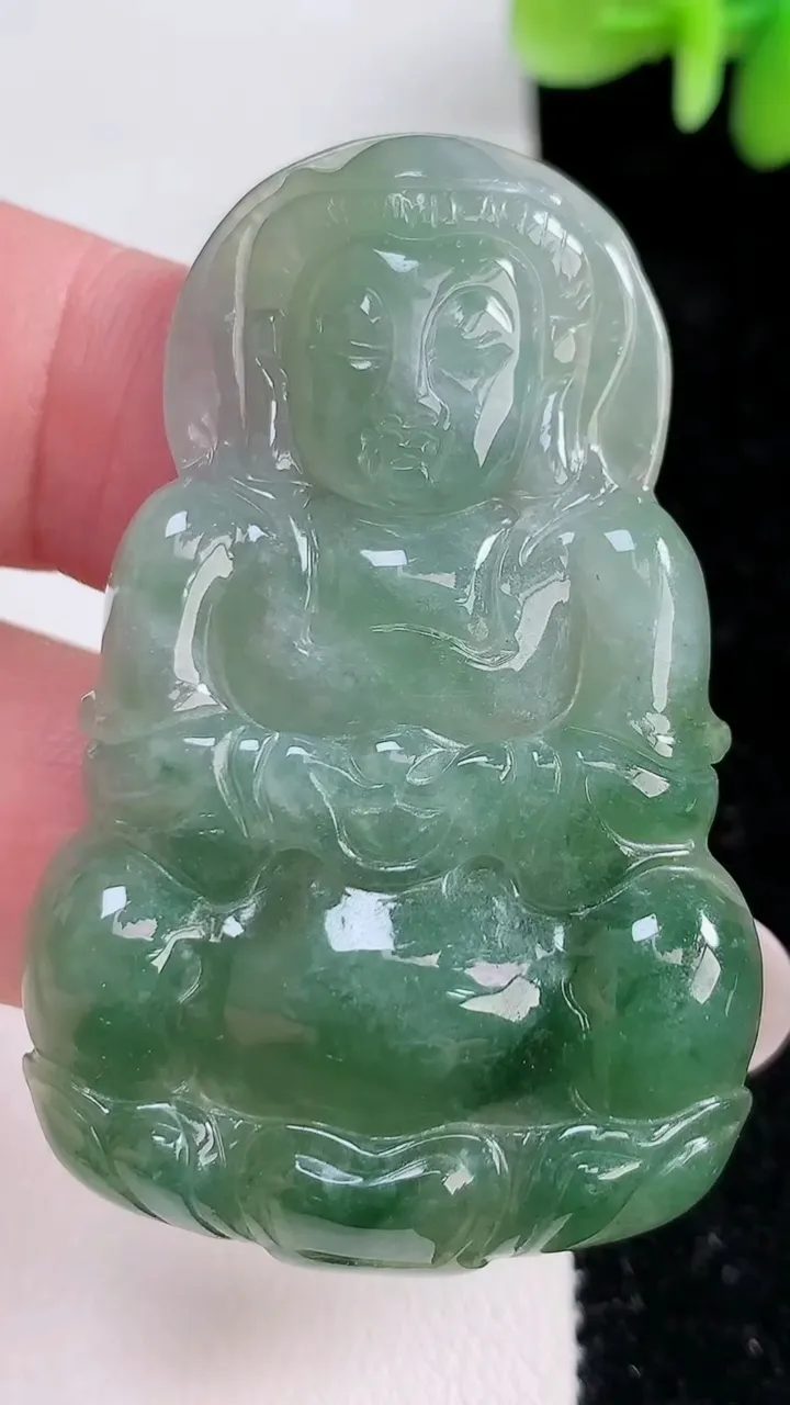 天然A货翡翠大日如来吊坠,尺寸57.3-33-5.3,重量:24.09g 12月14日