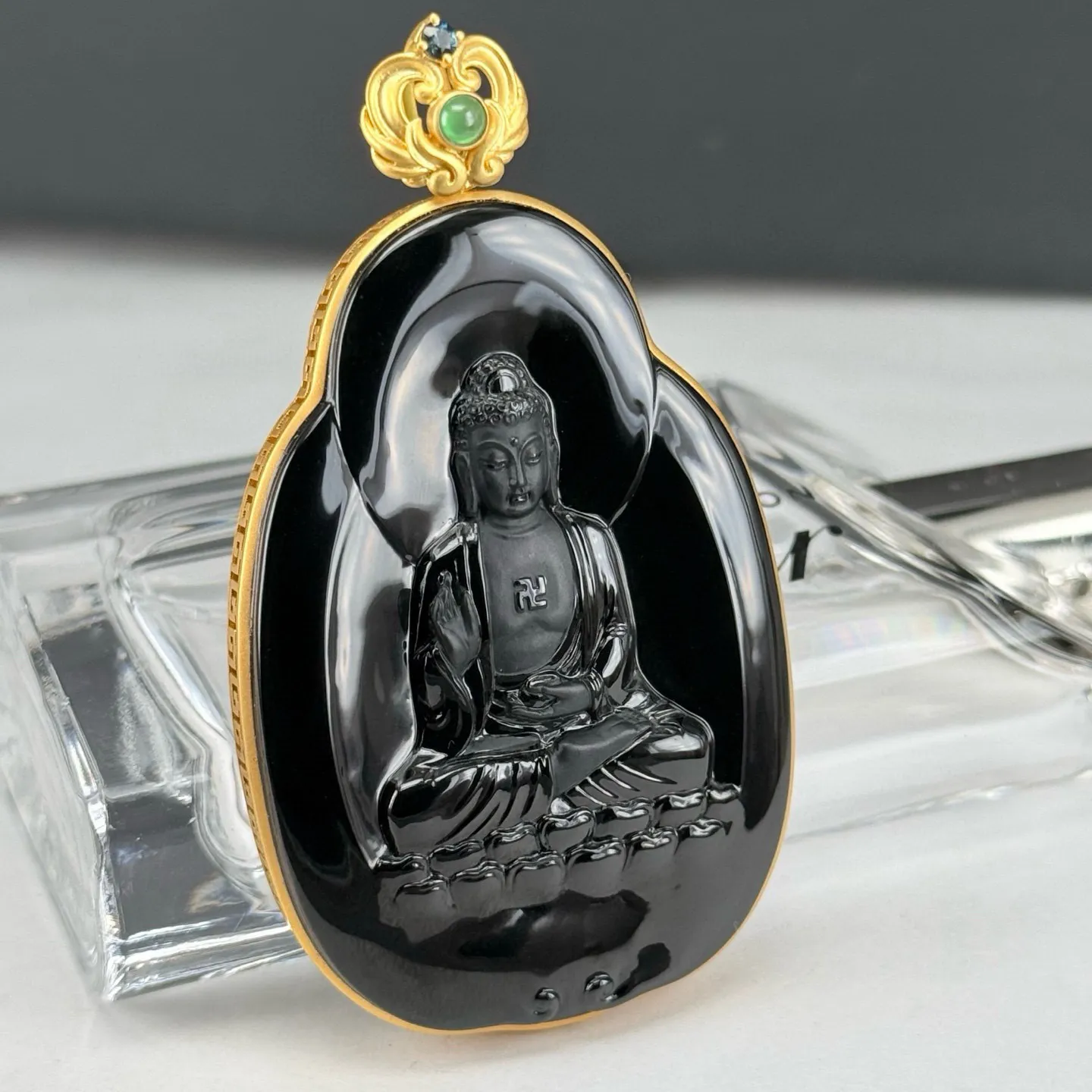 精品18k墨翠大日如来 种好色正 黑度极好 打灯通透 油性十足 尺寸72.4