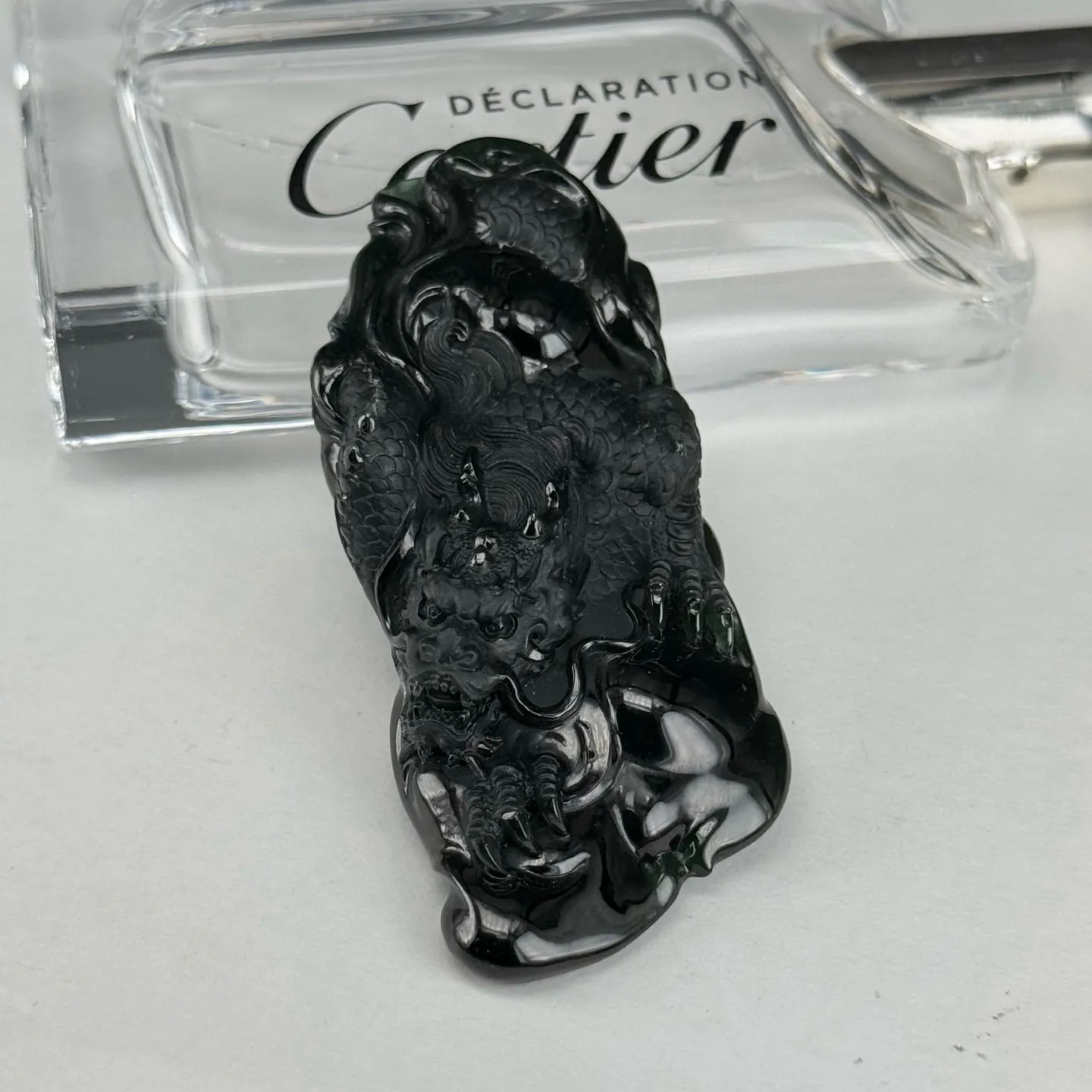 精品18k墨翠貔貅吊坠 种好色正 黑度极好 打灯通透 油性十足 尺寸25.2