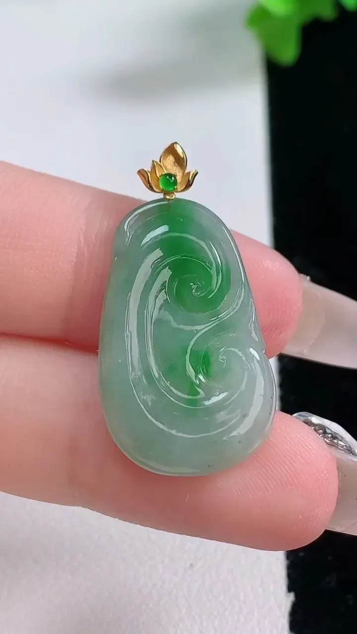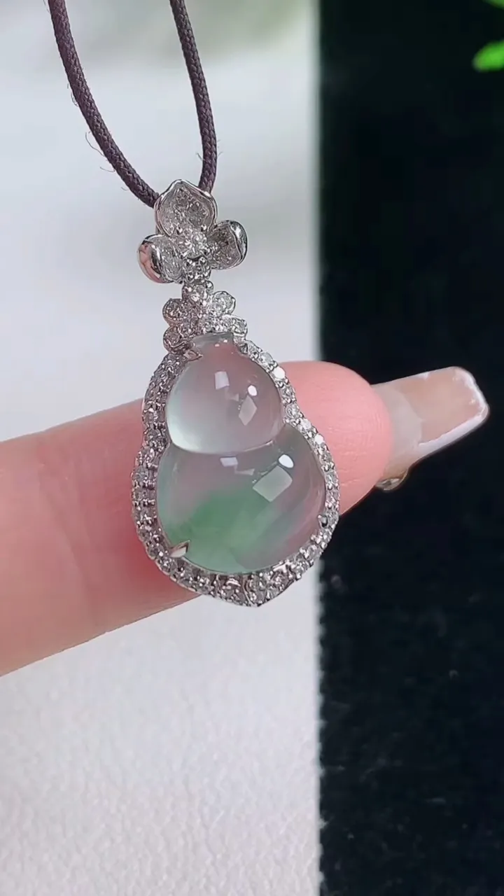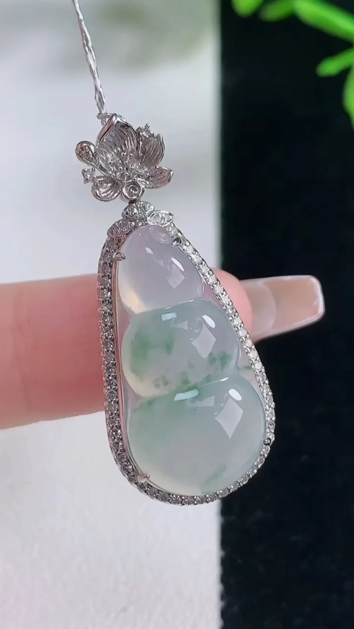 天然A货翡翠种飘花葫芦吊坠,尺寸25-12.2-7.8,裸石13.5-9.8重量:2.44g 1月5