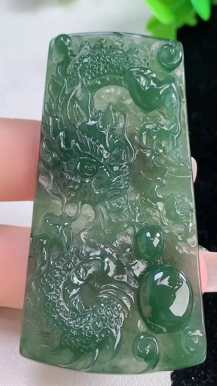 天然A货翡翠祥龙不动明王吊坠,尺寸67.4-42.5-5.8,重量:44.27g 1月5日