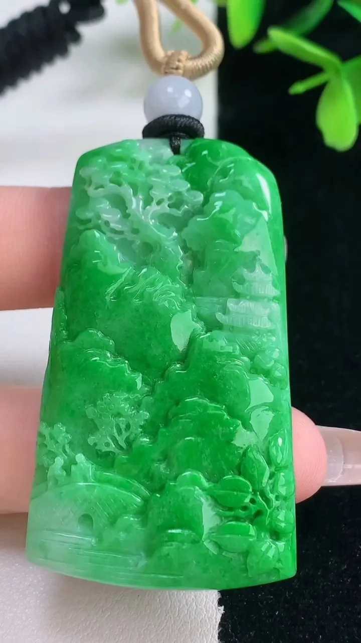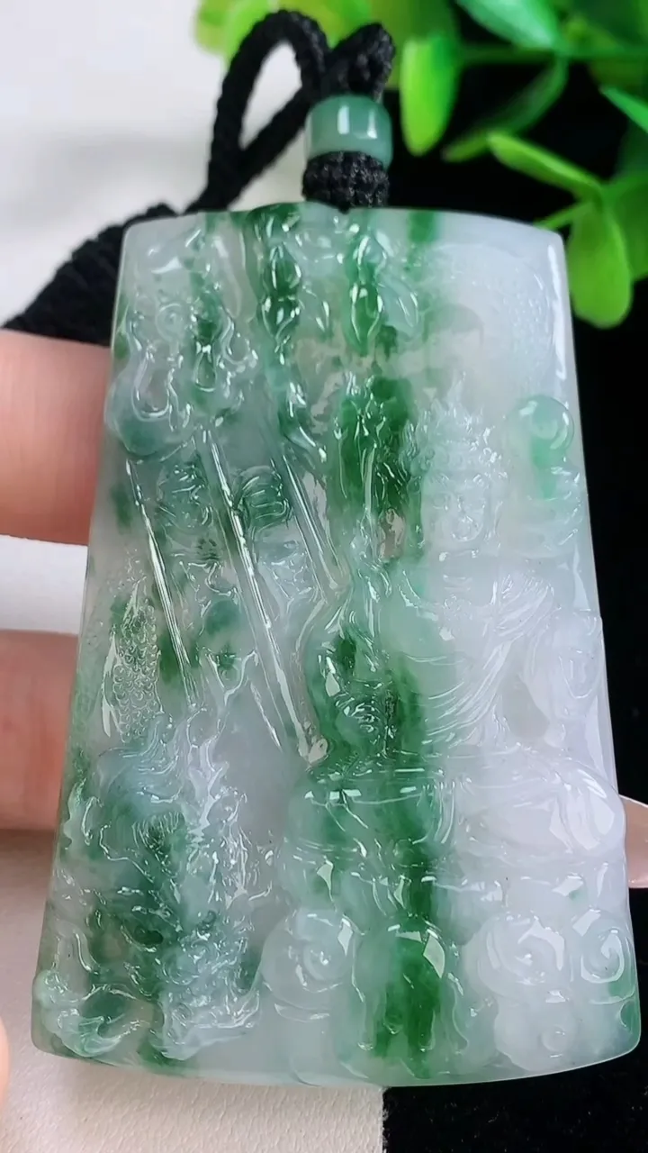天然A货翡翠山水牌吊坠,尺寸55-31.5-7.4,重量:33.47g 1月5日