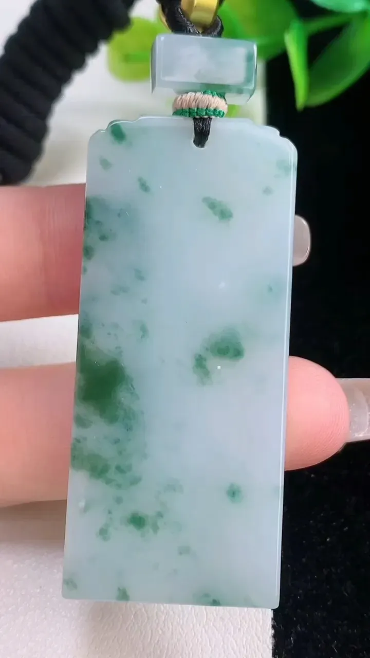 天然A货翡翠种飘花福豆吊坠,尺寸34.8-15-10,裸石23.3-12.3重量:4.70g 1月5