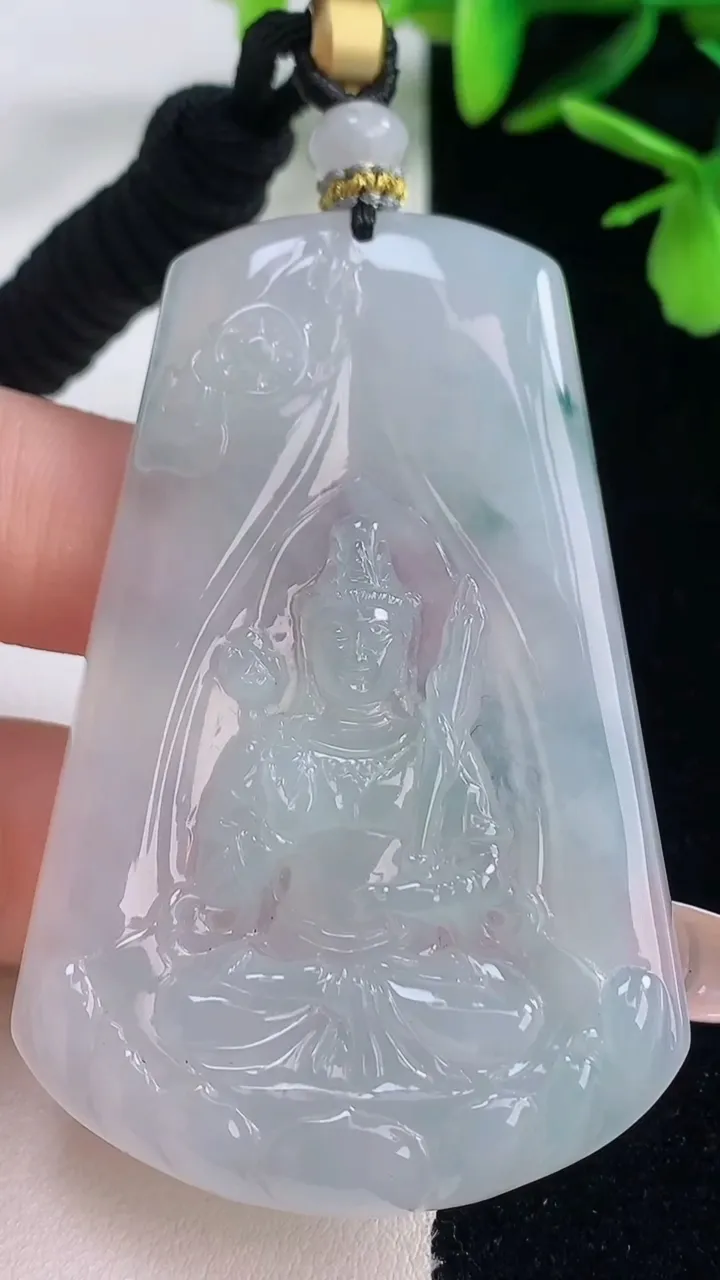 天然A货翡翠种飘花虚空藏菩萨吊坠,尺寸63-41-5.5,重量:32.13g 1月5日