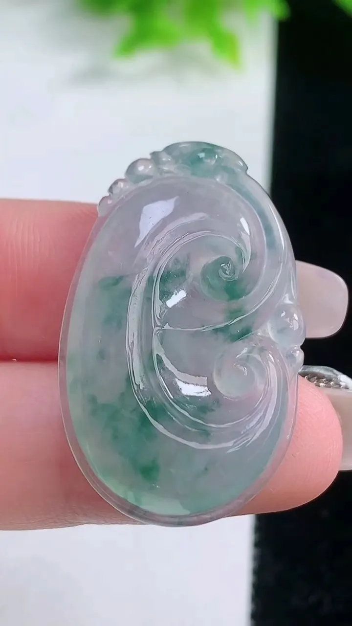 天然A货翡翠冰种飘花如意吊坠,尺寸34-20.6-5.4,重量:7.01g 1月19日