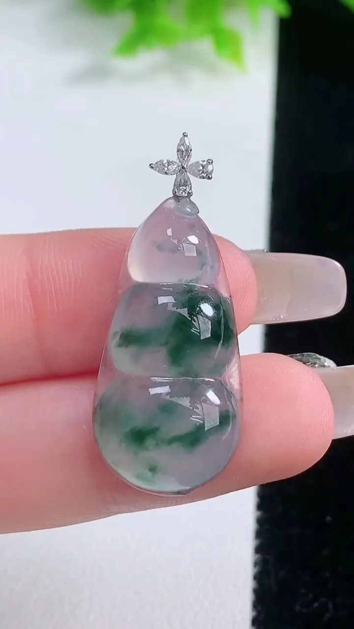 天然A货翡翠种飘花福豆吊坠,尺寸28.4-15-4.9,重量:4.02g 1月19日