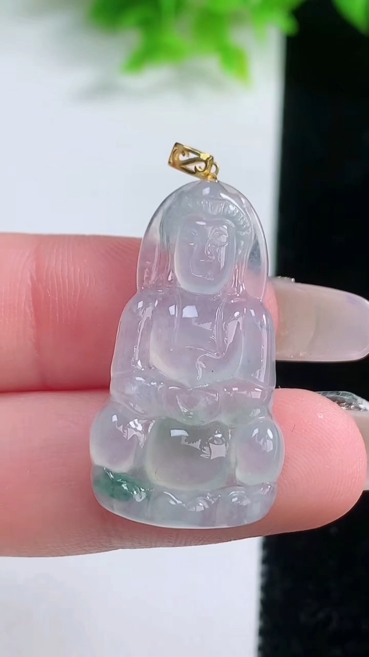 天然A货翡翠种飘花观音菩萨吊坠,尺寸31.4-17.4-3.7,重量:3.88g 1月19日