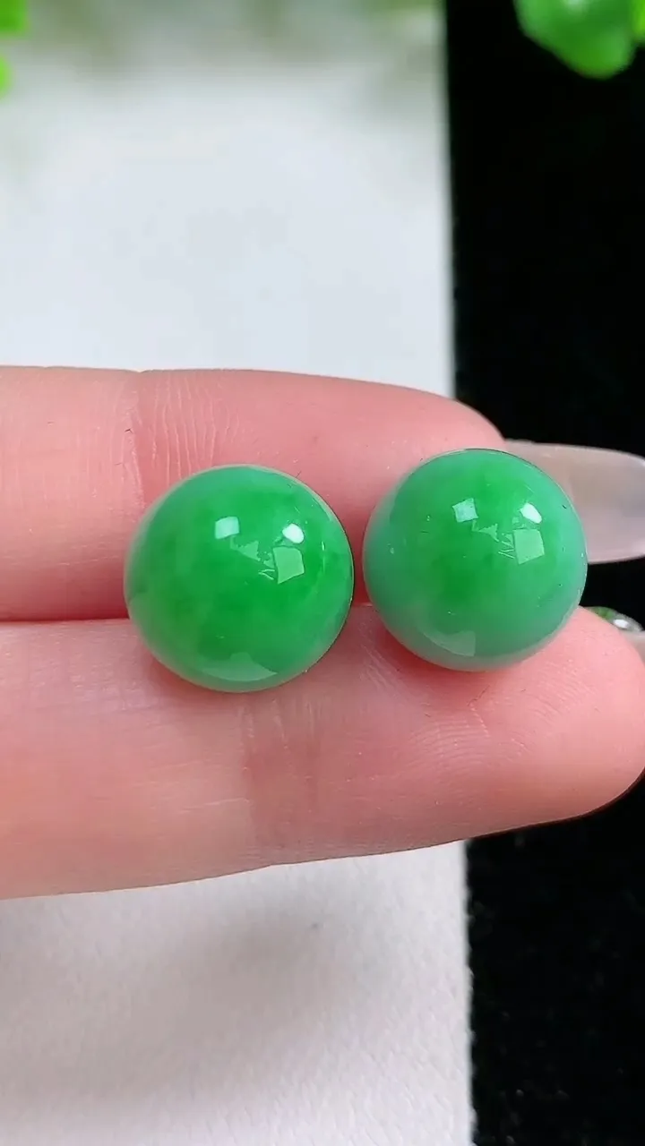 天然A货翡翠圆珠镶嵌件一对,尺寸12.6,重量:8.04g 1月20日