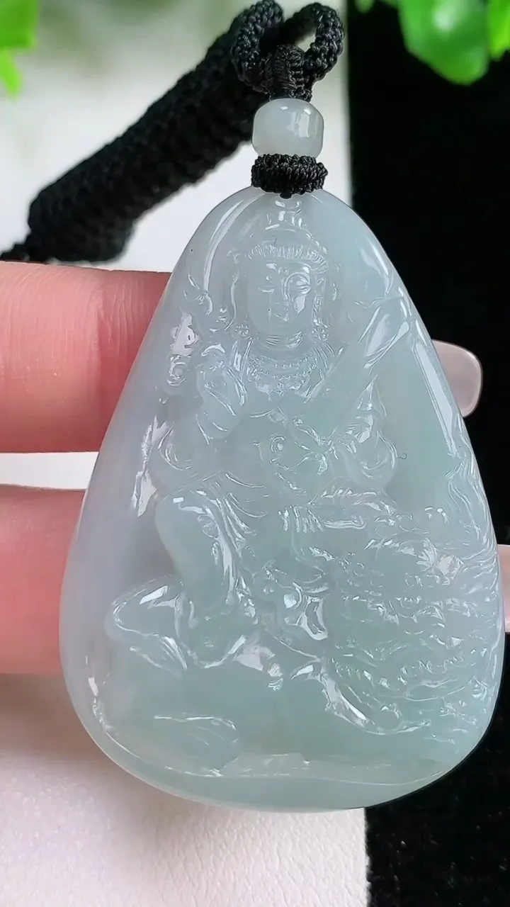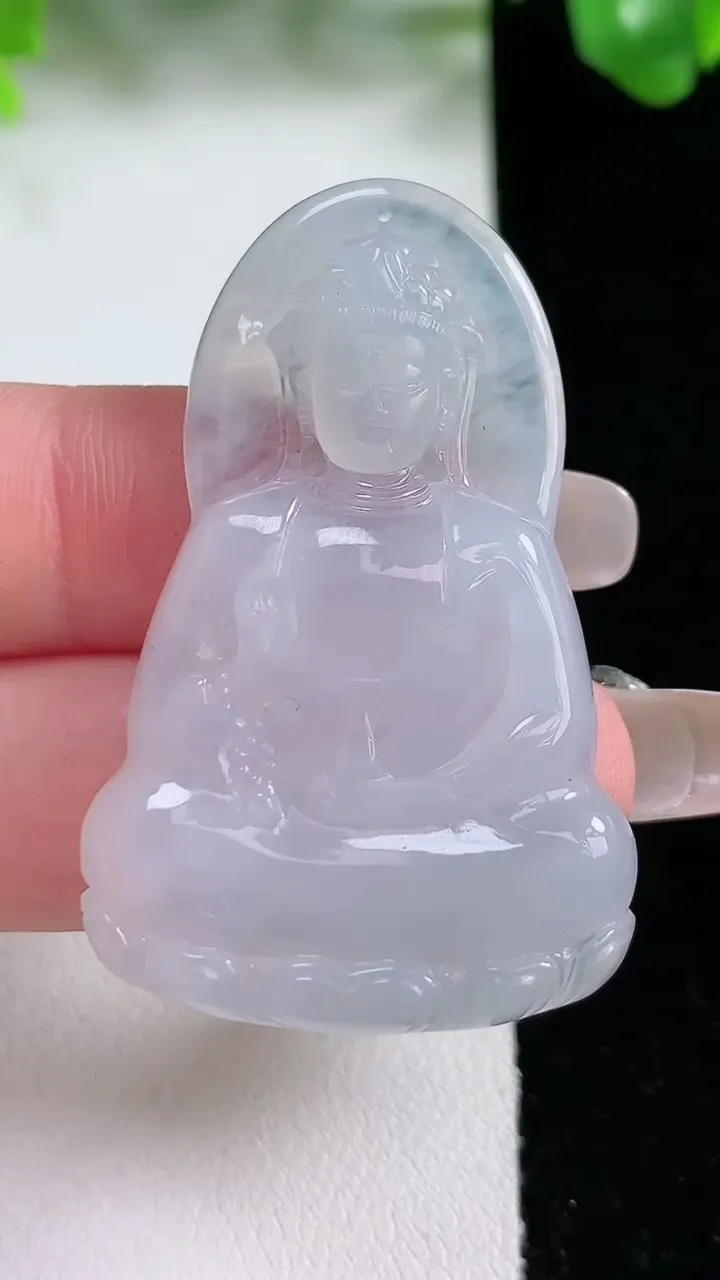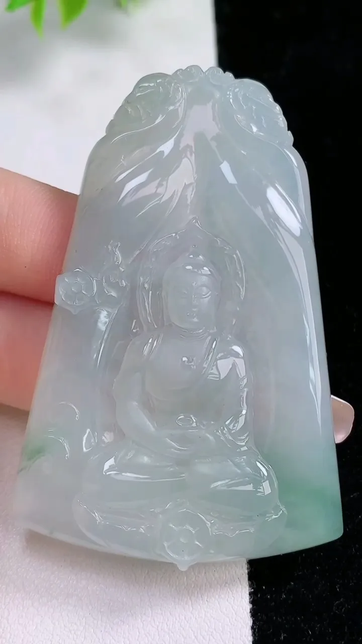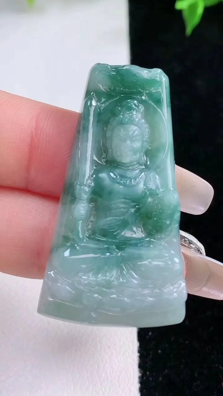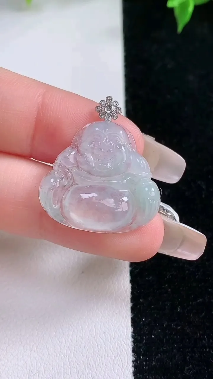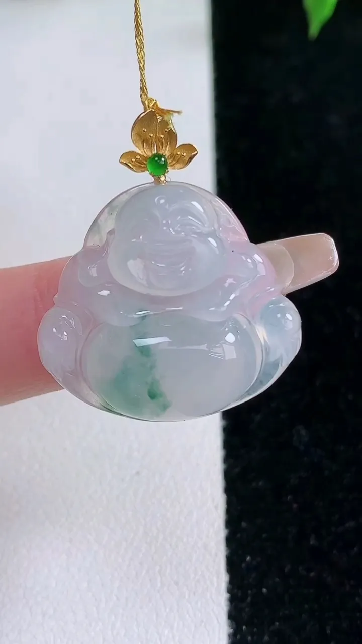 天然A货翡翠种飘花佛公吊坠,尺寸21.4-23.3-4.3,重量:3.44g 1月22日