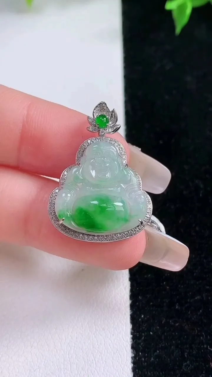 天然A货翡翠佛公吊坠,尺寸27.2-19-7,裸石17.5-17重量:2.96g 1月22日