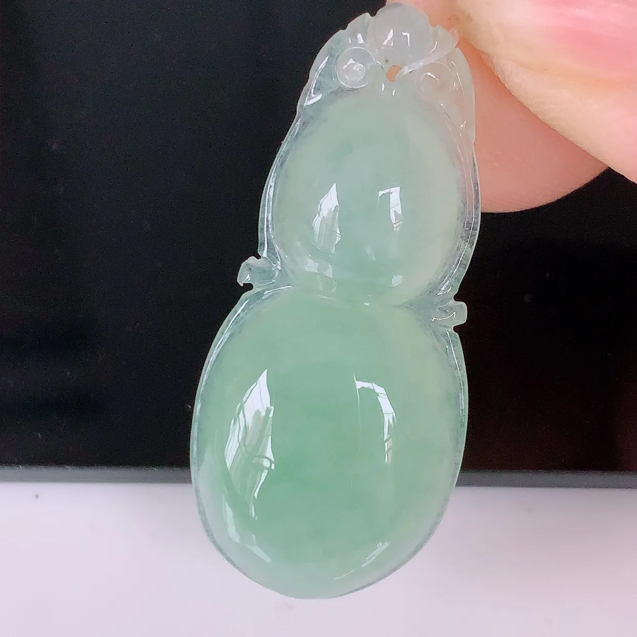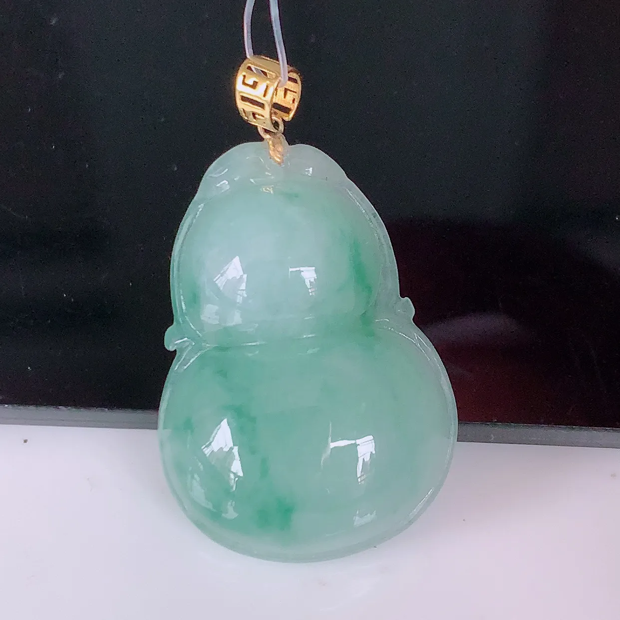 自然光实拍,冰种满绿翡翠葫芦吊坠,寓意福禄双全,财源滚滚,清新脱俗,佩戴效果优雅迷人!#49.19