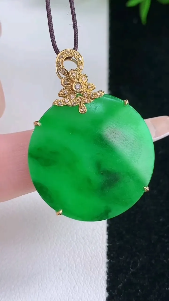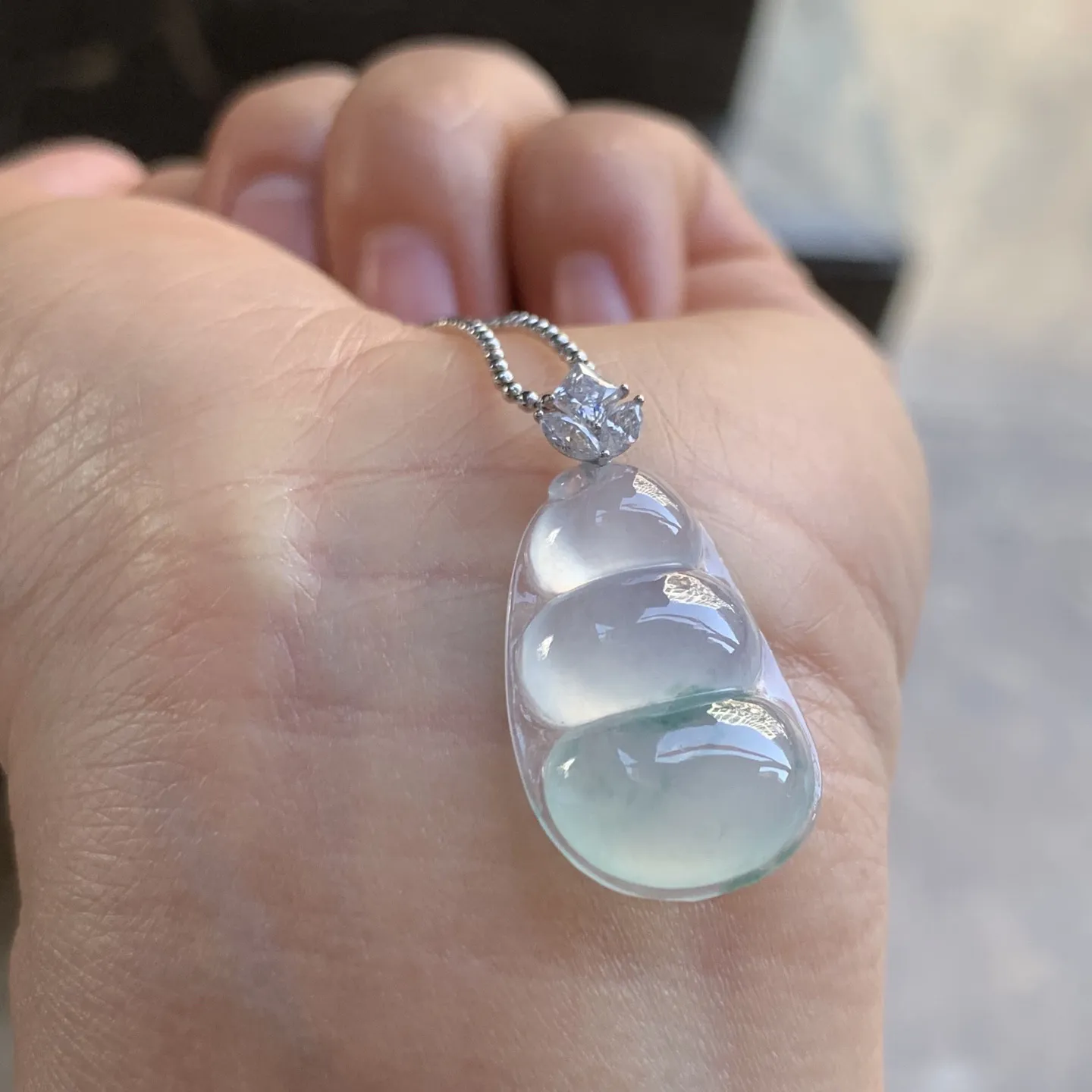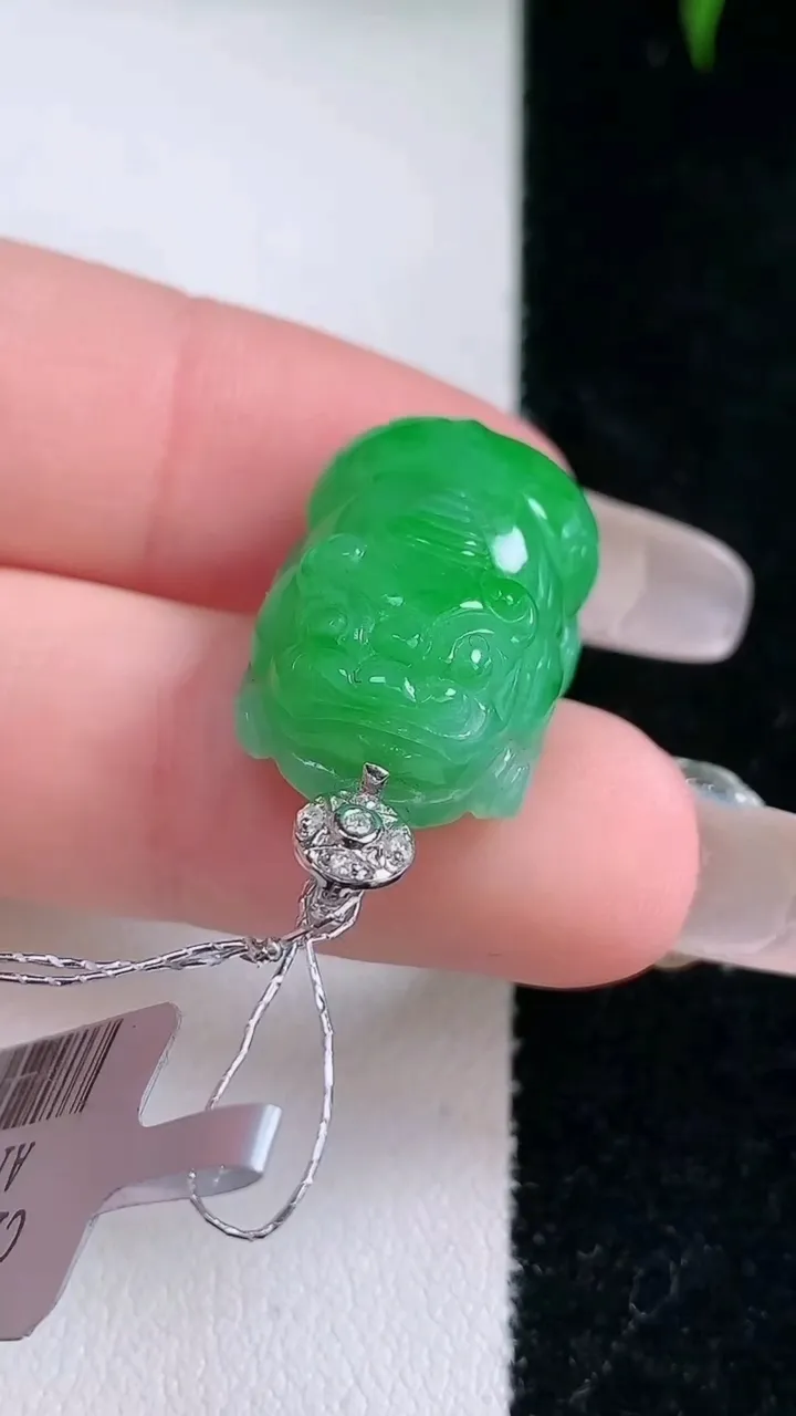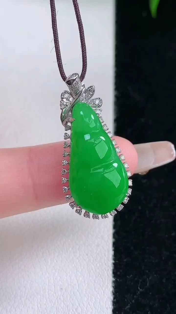 18k金钻镶嵌满绿葫芦吊坠 玉质细腻 色泽清新艳丽 整体尺寸24*16.6*13.1