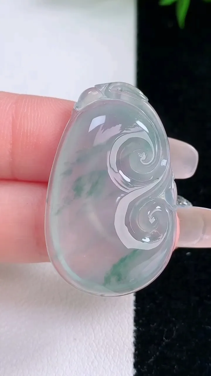 A货天然翡翠冰种飘绿叶子吊坠重量9.50 2月2日