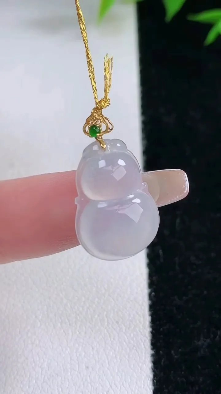 天然A货翡翠种白冰葫芦吊坠,尺寸17-12.4-3.8,重量:1.72g 2月3日