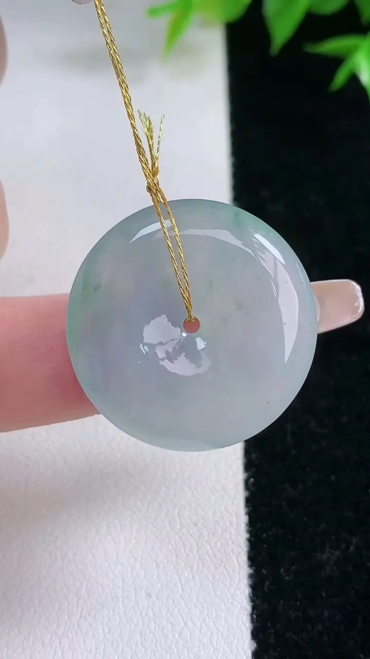 天然A货翡翠冰种飘花平安扣吊坠,尺寸24.8-5.4,重量:7.00g 2月3日