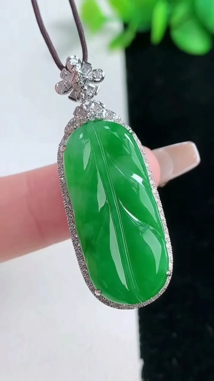天然A货翡翠金枝玉叶 叶子吊坠,尺寸40-14-7.3,裸石28-12.6重量:5.78g 2月5日