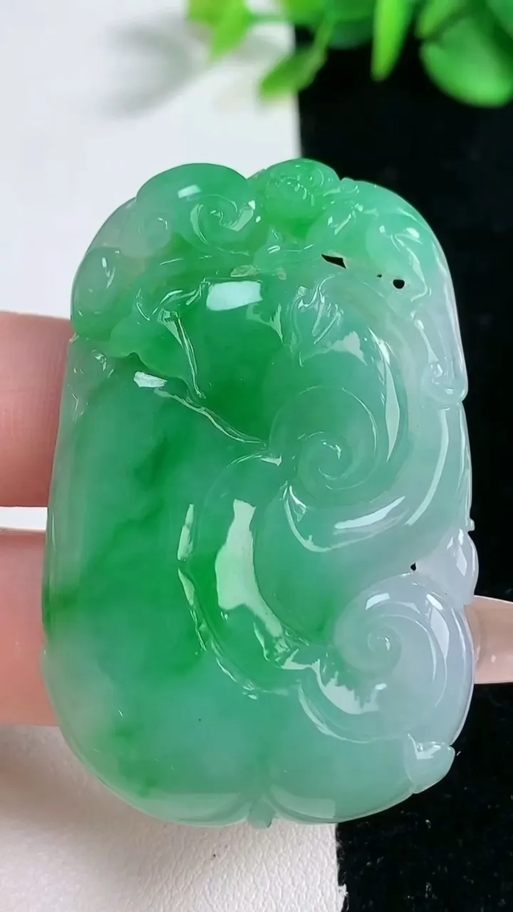 天然A货翡翠如意吊坠,尺寸52.3-33.6-6.8,重量:26.40g 2月5日