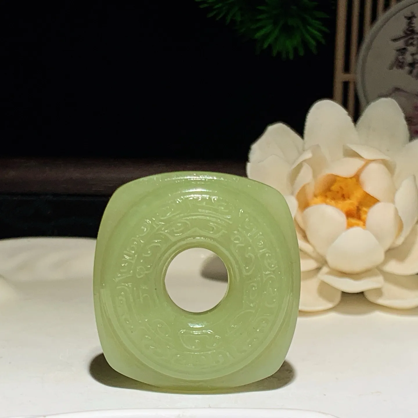 和田玉白玉翠青平安无事牌挂件 尺寸47/30/12重41.5克。玉质细腻油润。手推出油。品相大气 l