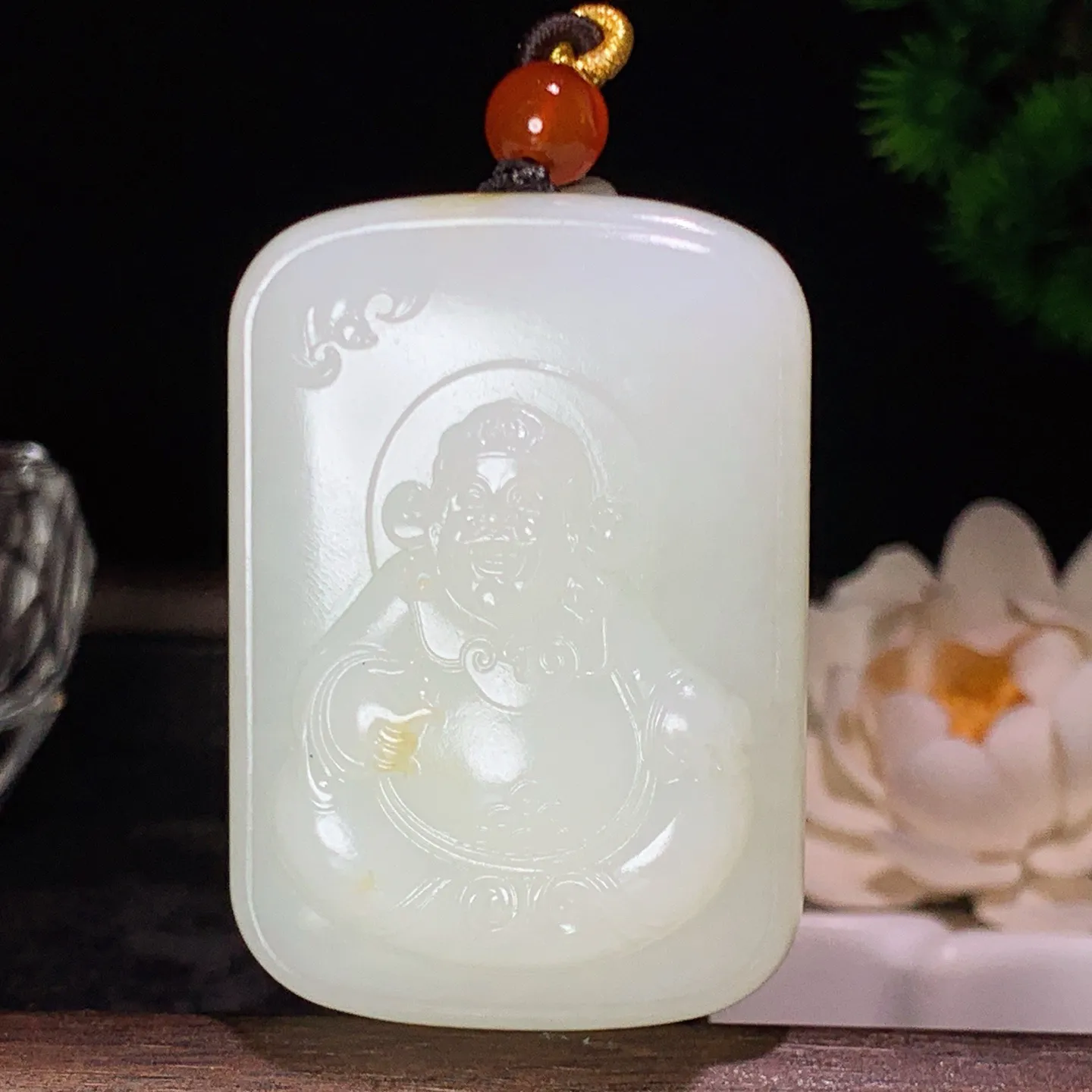 新疆和田玉白玉且末糖财神爷牌子挂件 尺寸55/38/17重78克。玉质细腻油润。手推出油。品相大气
