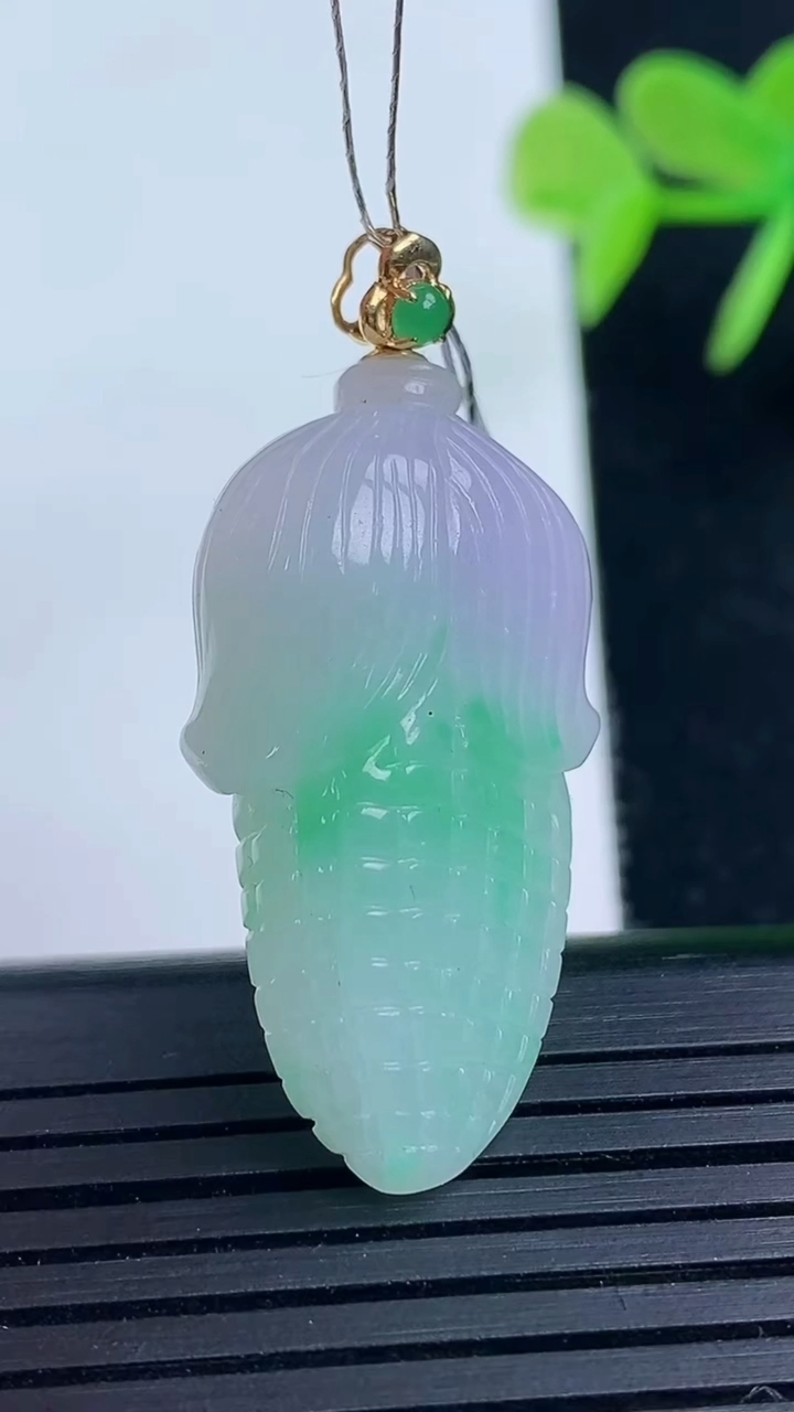 天然A货翡翠玉米吊坠尺寸33.3-16.4-8.4重量:8.53g 3月17日
