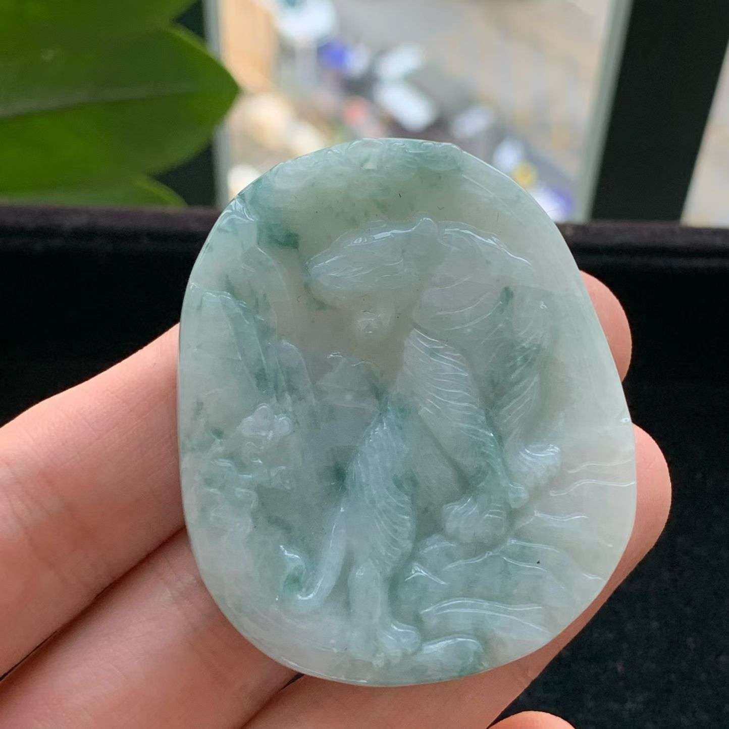 A货天然翡翠冰糯种飘花上山老虎牌吊坠重量36.74 3月17日