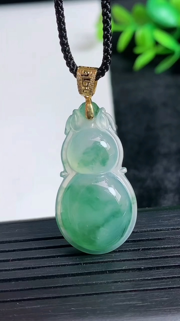天然A货翡翠种飘花葫芦吊坠尺寸33.3-16.9-5.8重量:5.05g 3月24日