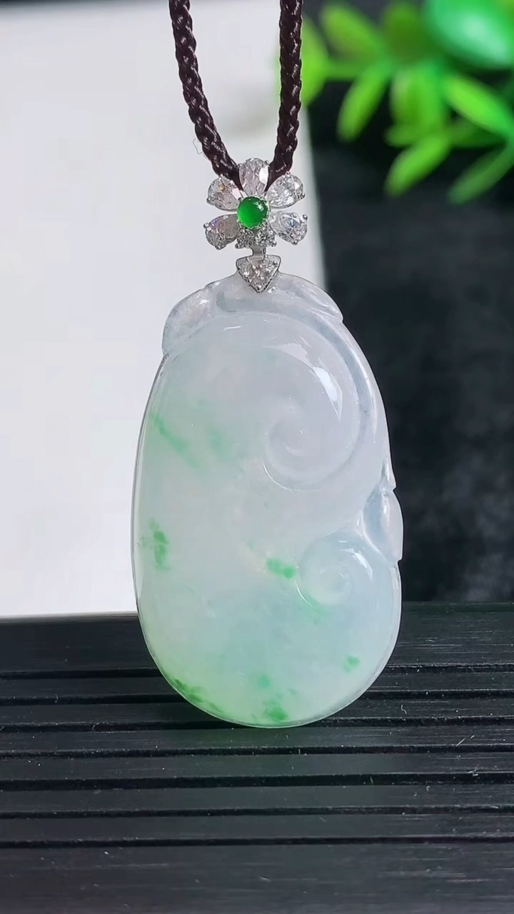 天然A货翡翠如意吊坠尺寸33-19.4-4.4重量:5.53g 3月24日