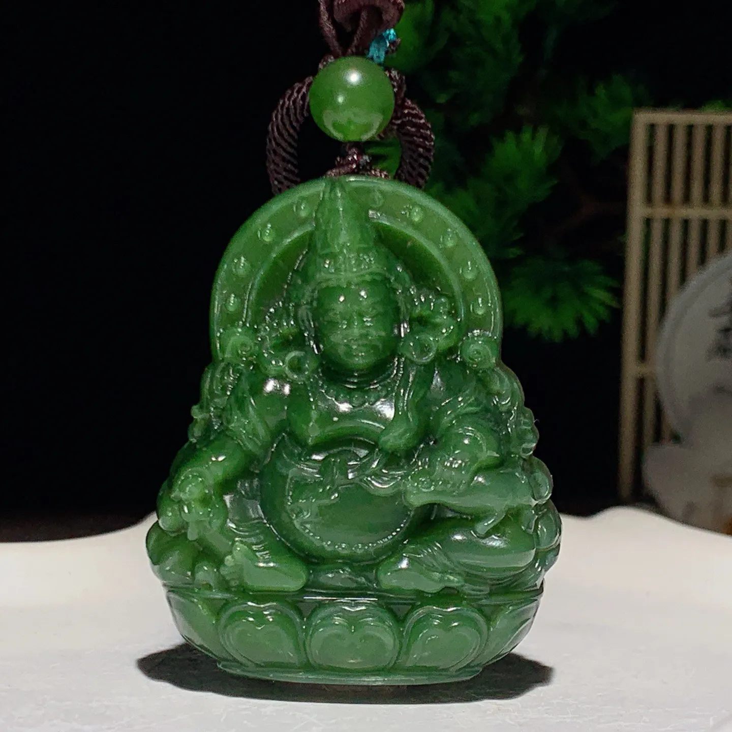和田玉阳绿俄罗斯碧玉黄财神挂件。尺寸48/40/15重50克。玉质细腻油润。手推出油。佩戴高端典雅。