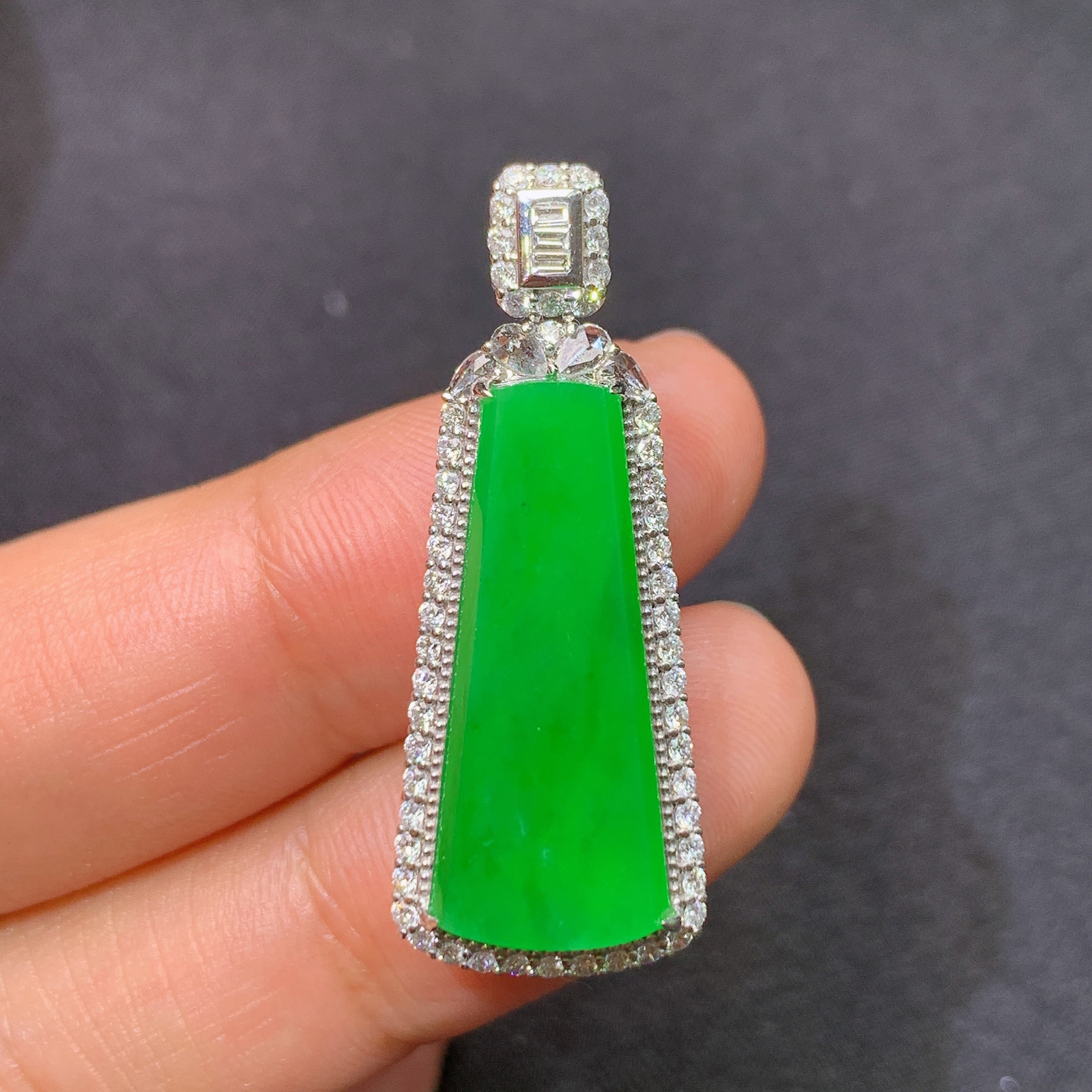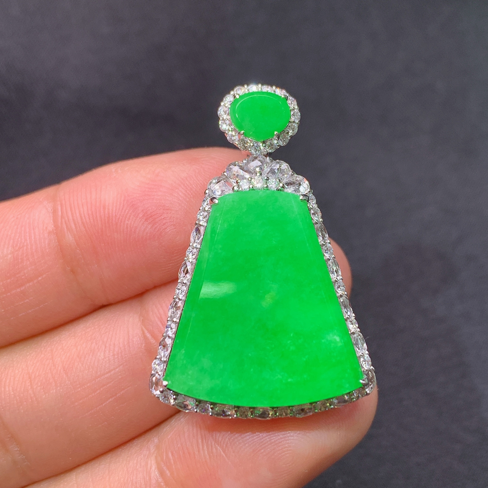 冰阳绿无事牌吊坠,18k金镶嵌,冰润色阳,种老水足,Ff 尺寸33.8*13*7.7