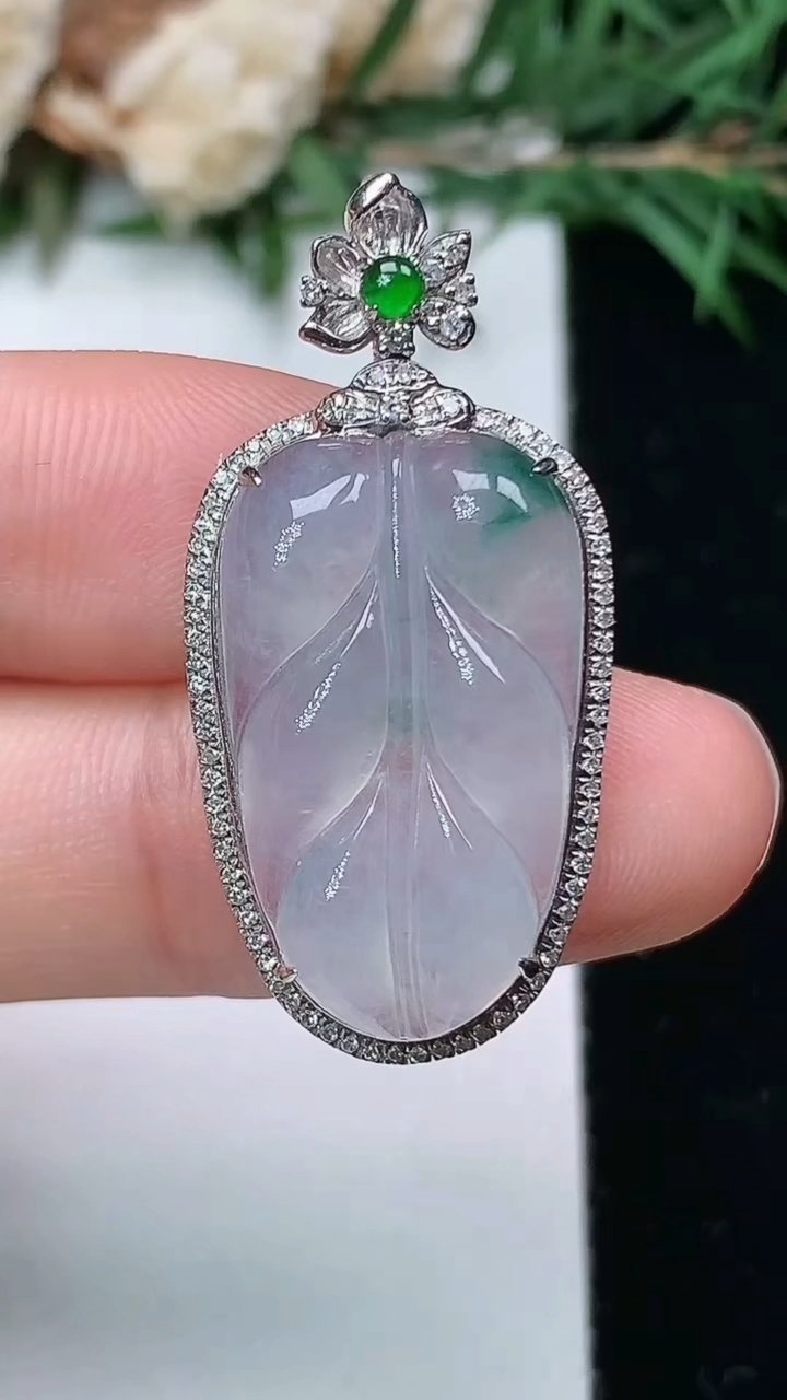 天然A货翡翠金枝玉叶 叶子吊坠,尺寸33.8-16.4-6.9,裸石22.4-13.5,重量:4.2