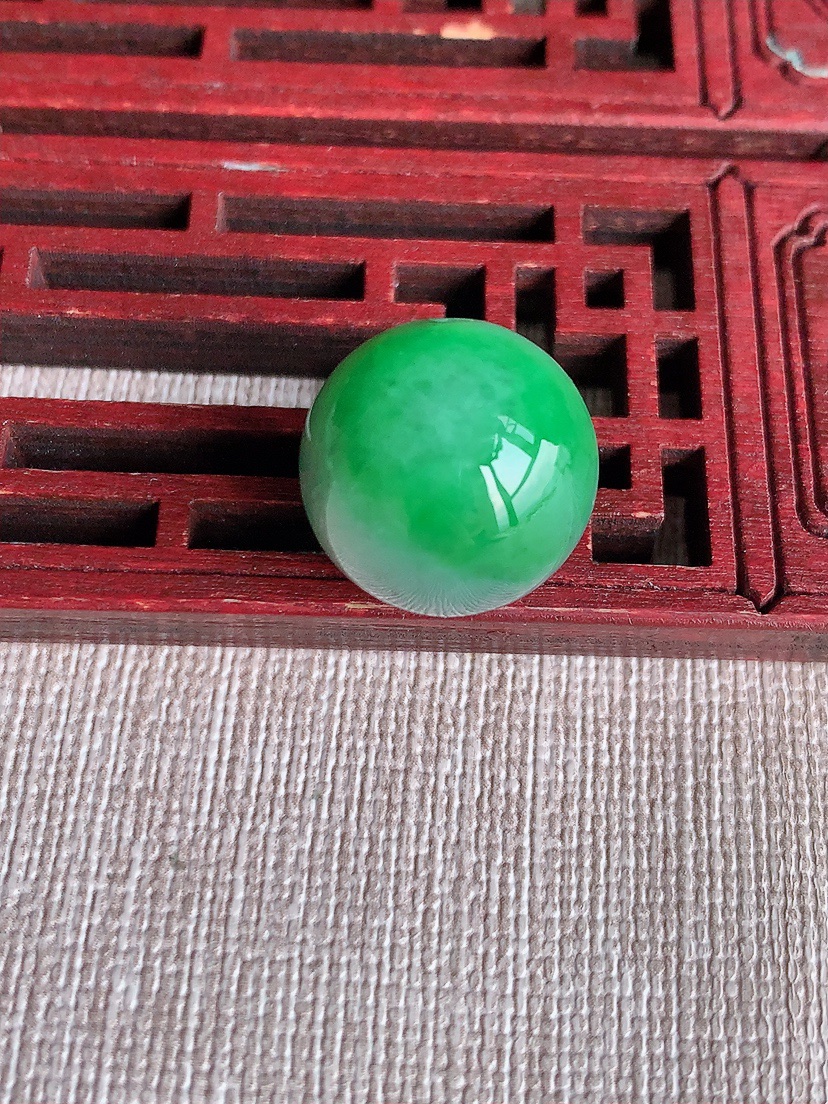 天然A货翡翠飘绿圆珠…