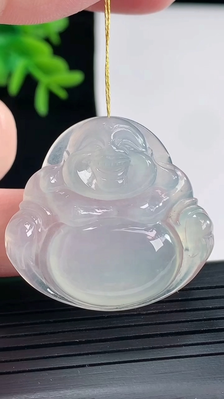 18k金钻镶嵌冰种飘绿佛公吊坠 玉质细腻 色泽艳丽清新 水润亮眼 整体尺寸29.5*22.6*7.2