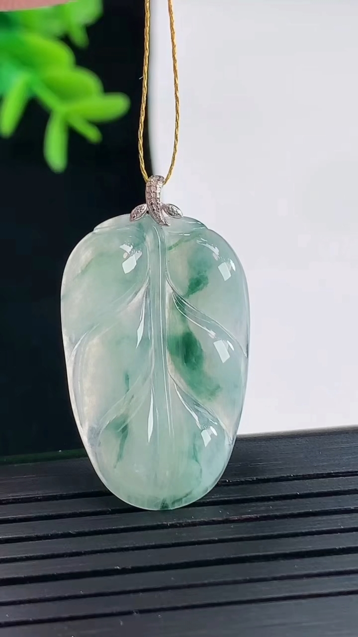 冰种飘绿树叶吊坠 玉…