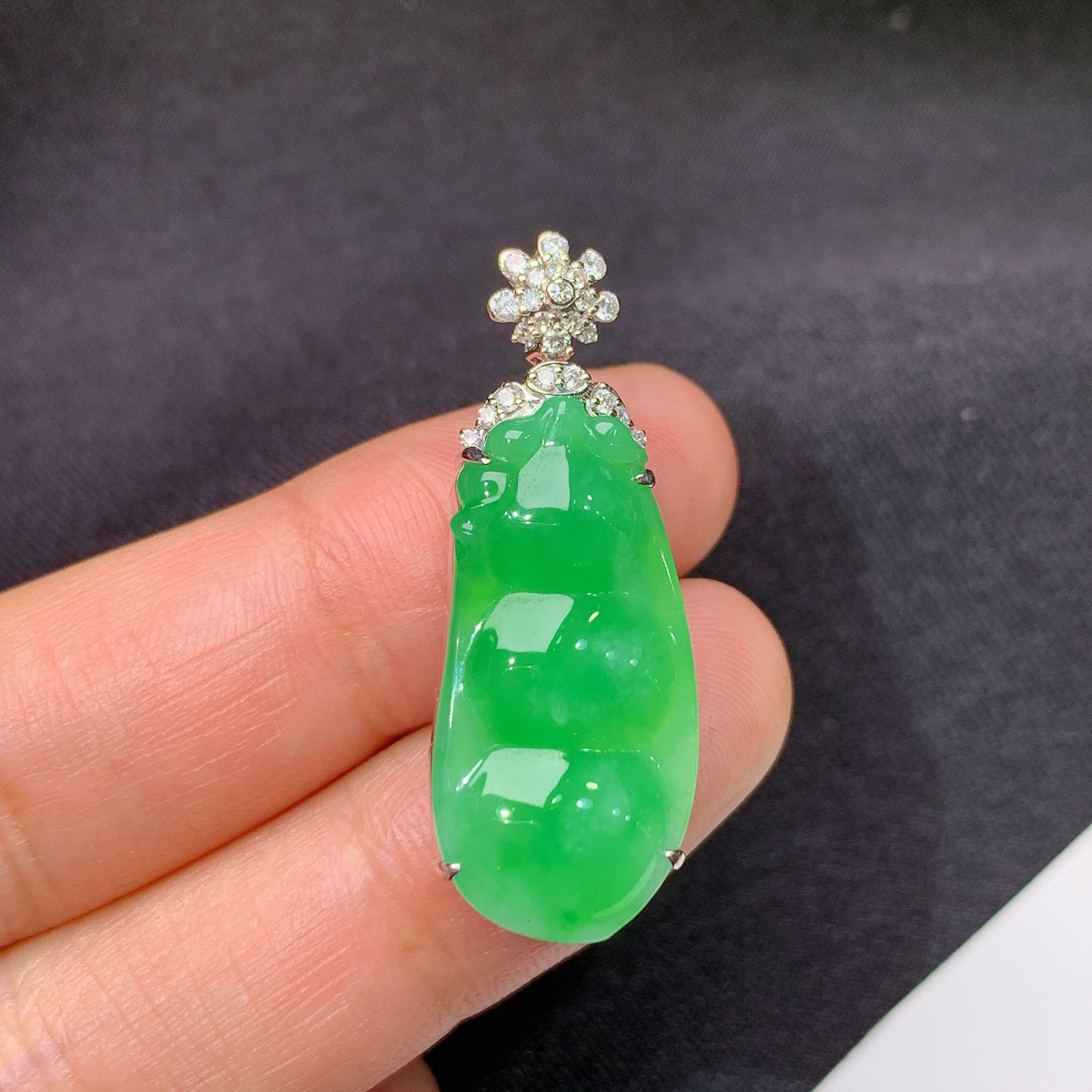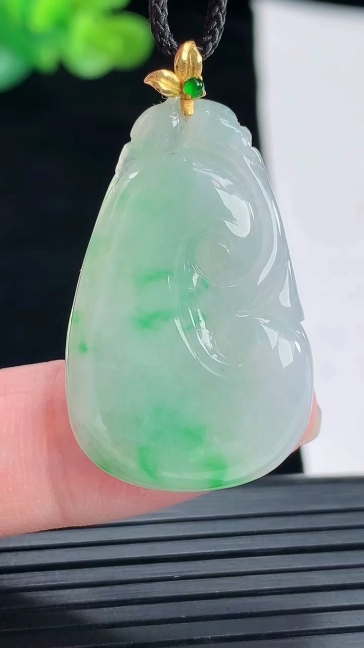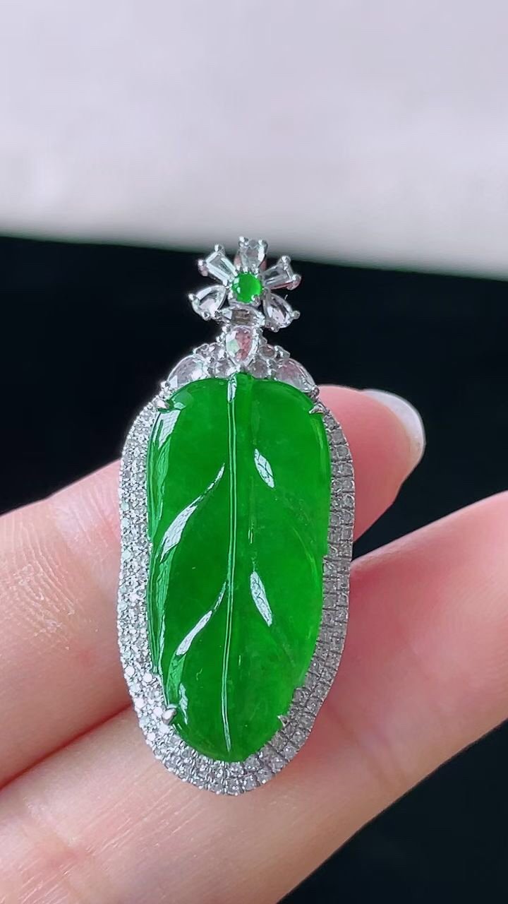 天然A货翡翠种飘花金枝玉叶 叶子吊坠,尺寸31-19.5-3.2重量:3.72g 4月27日