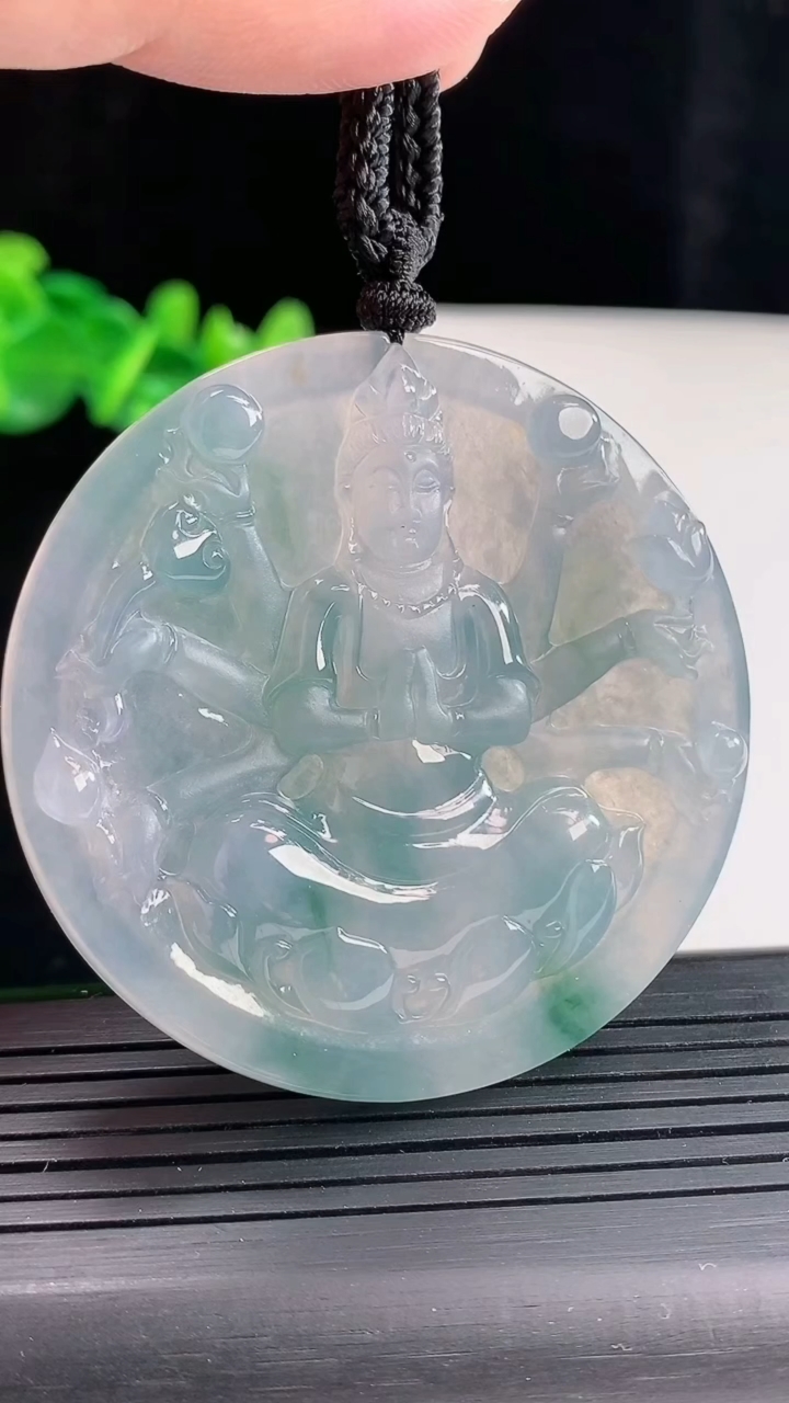 18k金钻镶嵌冰种佛公吊坠 玉质细腻 色泽艳丽清新 水润亮眼 整体尺寸31*17.8*7.8m5