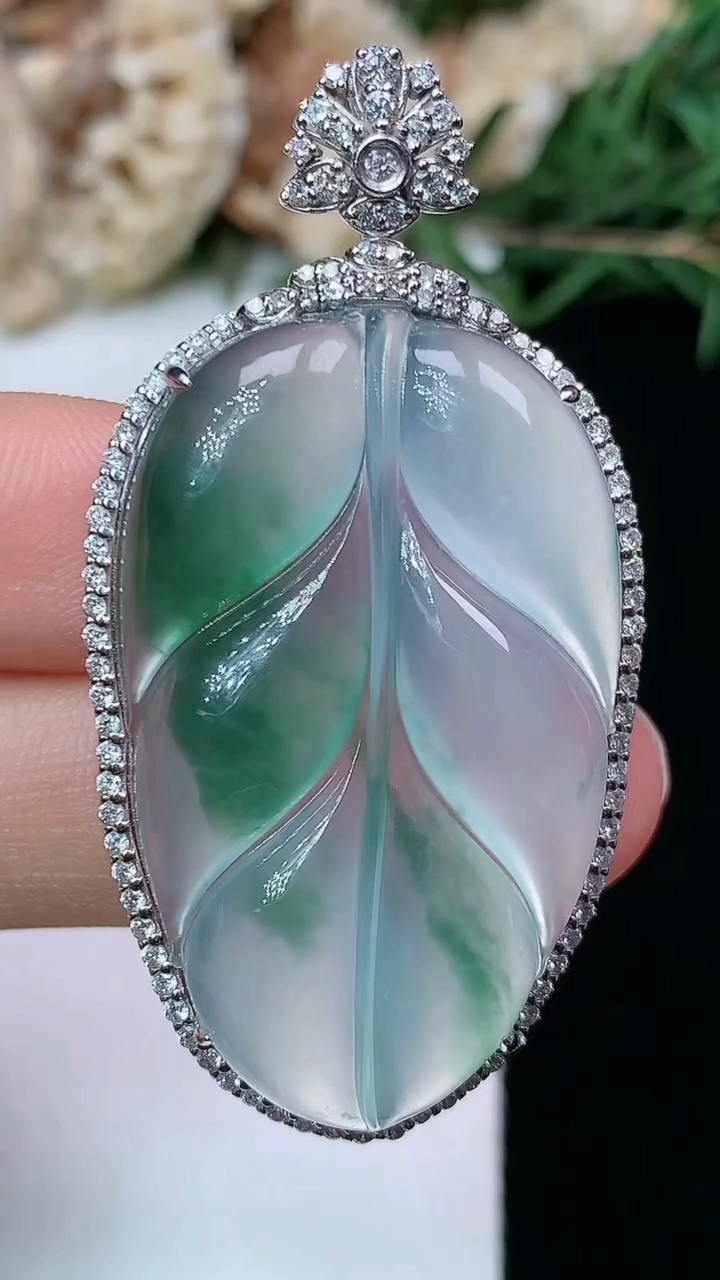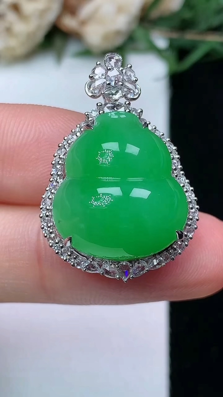 冰飘绿葫芦吊坠,18k金镶嵌,冰润细腻,色甜,种水足,Yt 尺寸21.2*12.7*6.6