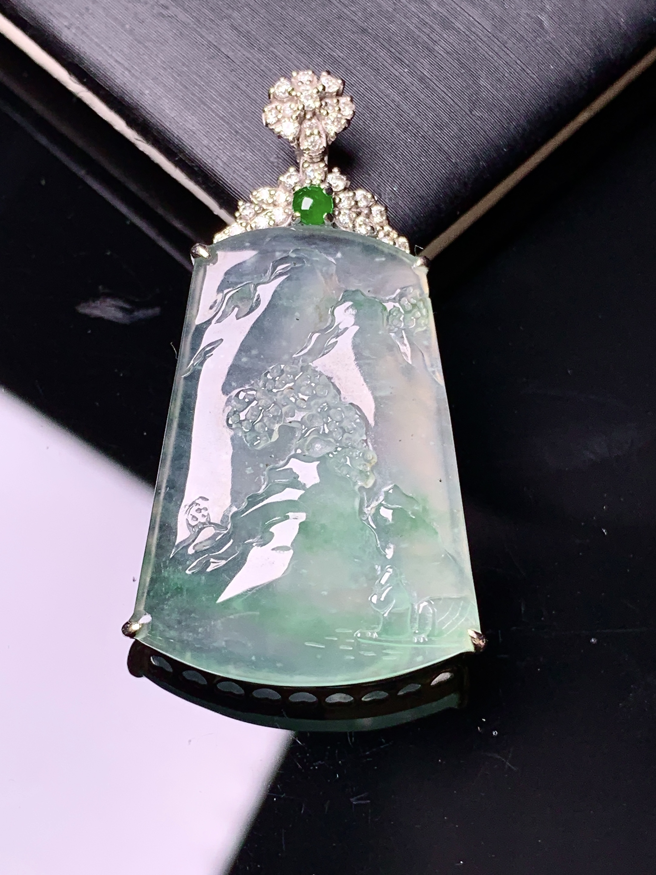 天然A货翡翠飘花无事牌吊坠尺寸47.4-32.7-5.7重量:25.34g 4月10日