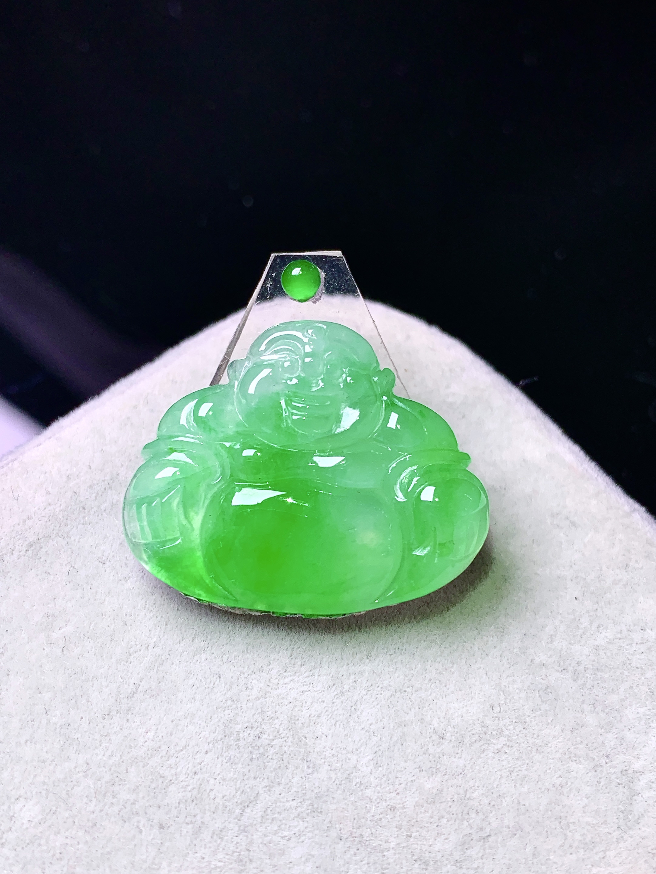 天然A货翡翠佛公吊坠,尺寸32.5-35-5.5重量:9.92g 4月27日