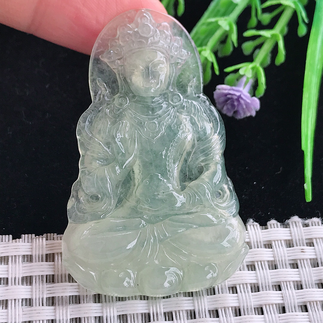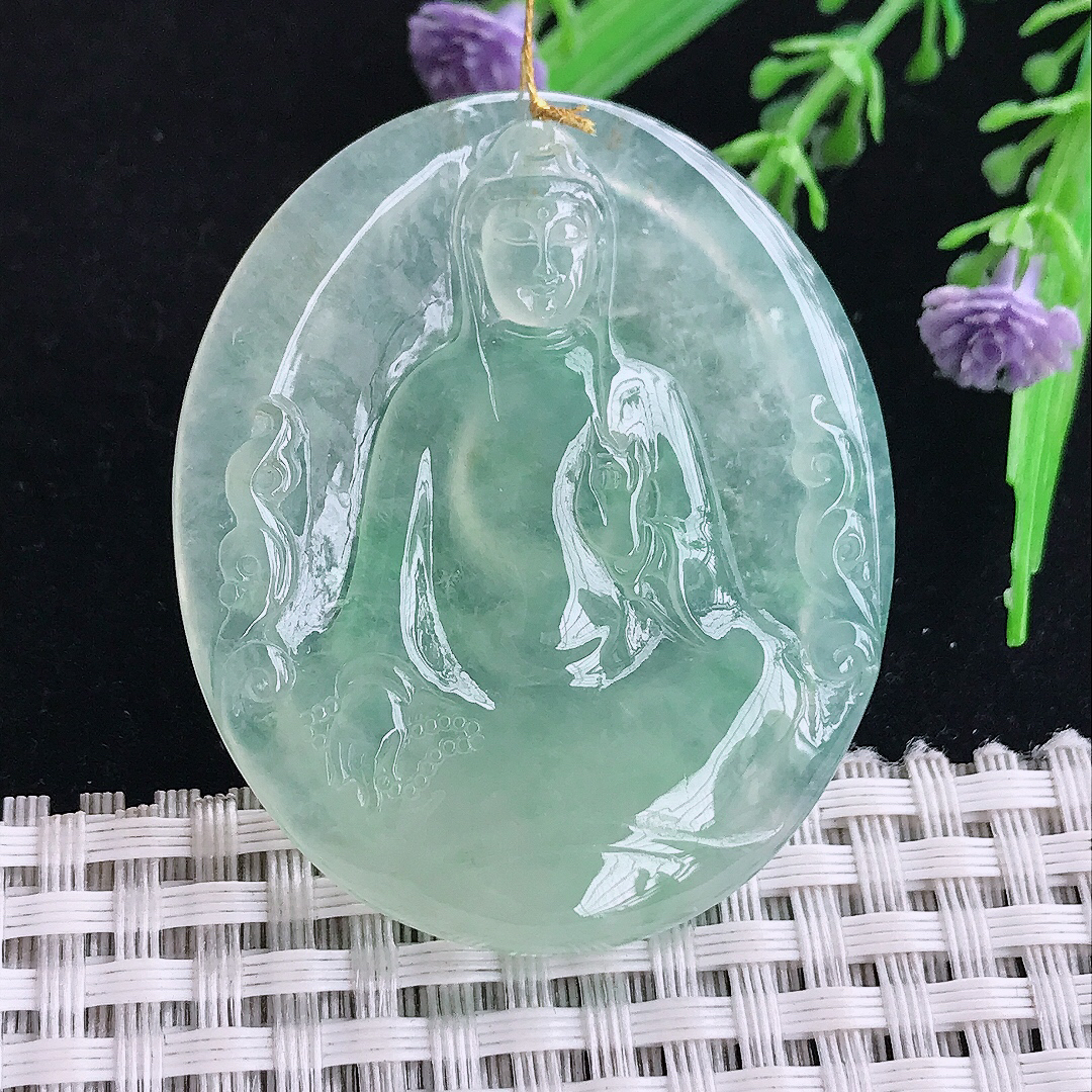 冰飘绿观音吊坠,18…