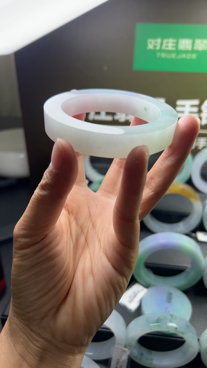56圈口 天然翡翠浅绿正装女款玉手镯49.88克