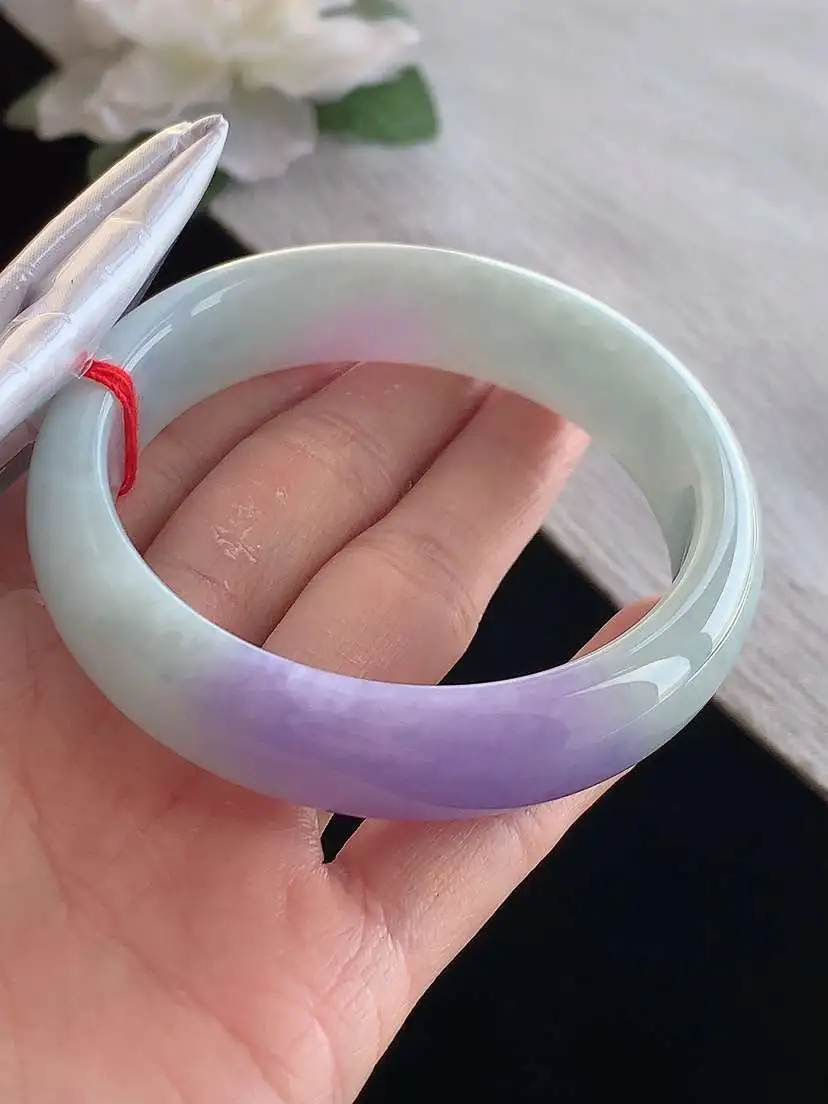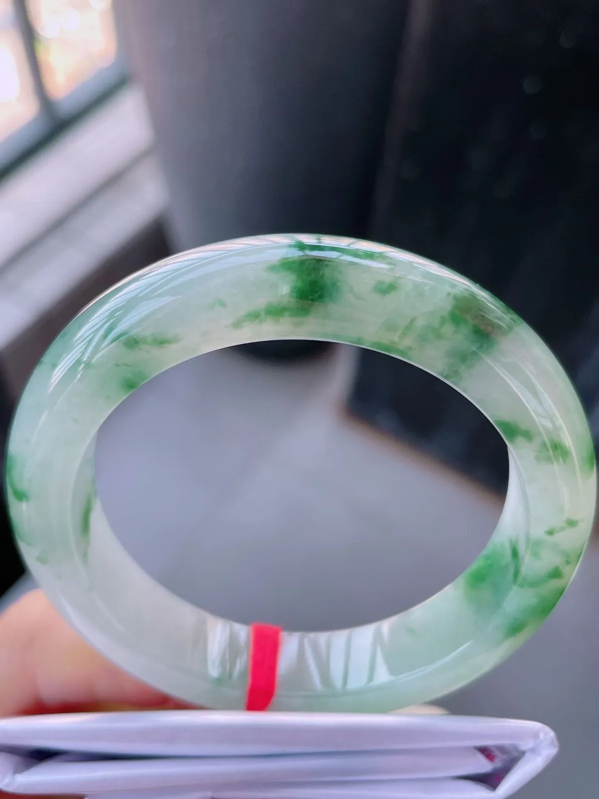 r自然光56*12.3*8.5平安镯 缅甸翡翠a货玉手镯冰飘花宽边玉手环
