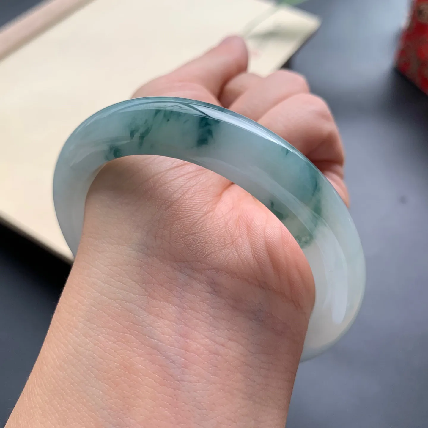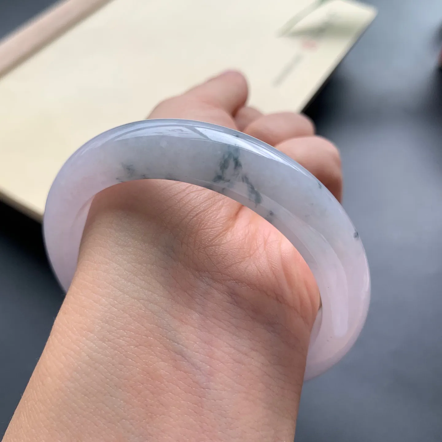 54.5圈口飘花正圈手镯 尺寸:54.5-12.3-8.5,无纹裂,细腻光滑,花色飘逸